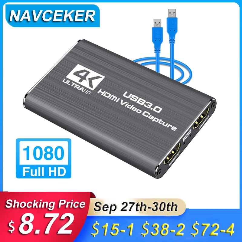 Comprar Navceker-tarjeta de captura de juegos USB 3,0 HDMI, placa de vídeo 4K, adaptador de transmisión fiable para transmisiones en vivo, grabación de vídeo, 1080P