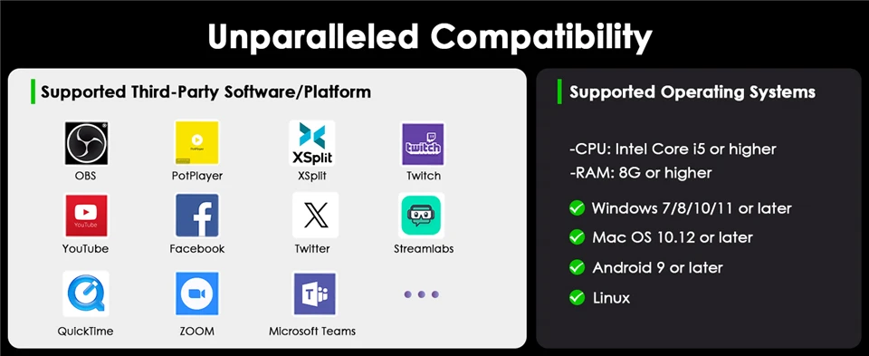 No necesita controladores ni utilidades adicionales. Simplemente conecte Navceker Video Capture a cualquier PC con USB 3,2 tipo C y comience a transmitir y grabar al instante.