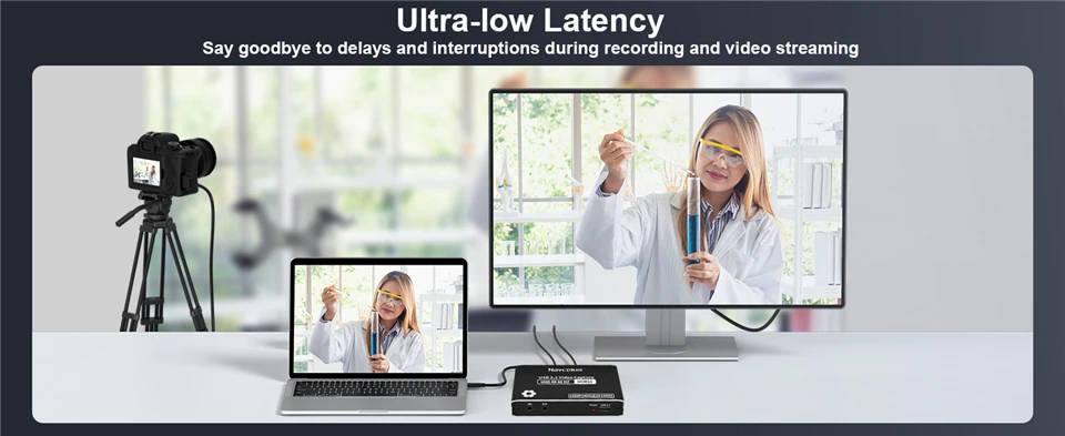 【Latencia ultrabaja 】La señal directa tiene una latencia ultrabaja, por lo que puede decir adiós a los retrasos e interrupciones durante la grabación y la transmisión de video. La latencia ultra baja garantiza una experiencia de usuario fluida y natural al capturar vídeos o jugar.