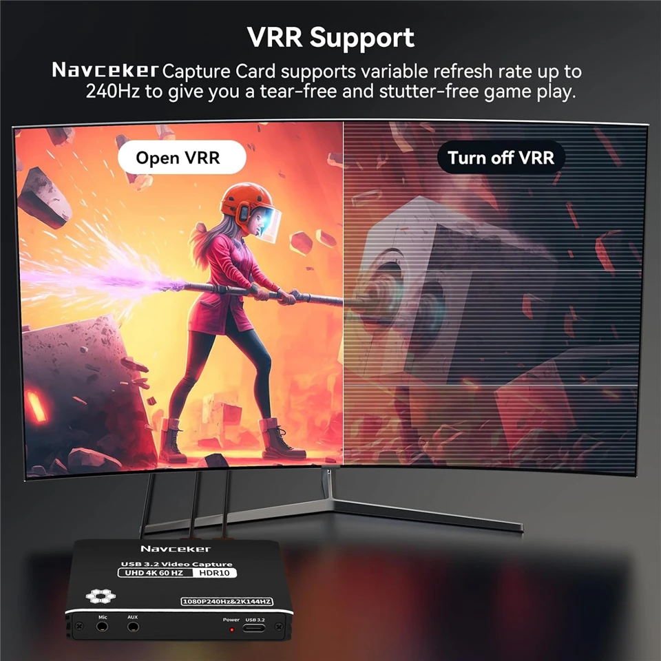 Navceker USB 3,2 Captura DE VIDEO 4K 60FPS 2K 120FPS 1080P 120FPS Streaming de captura de placa para PS5 4 Xbox Series X Phone placa de captura