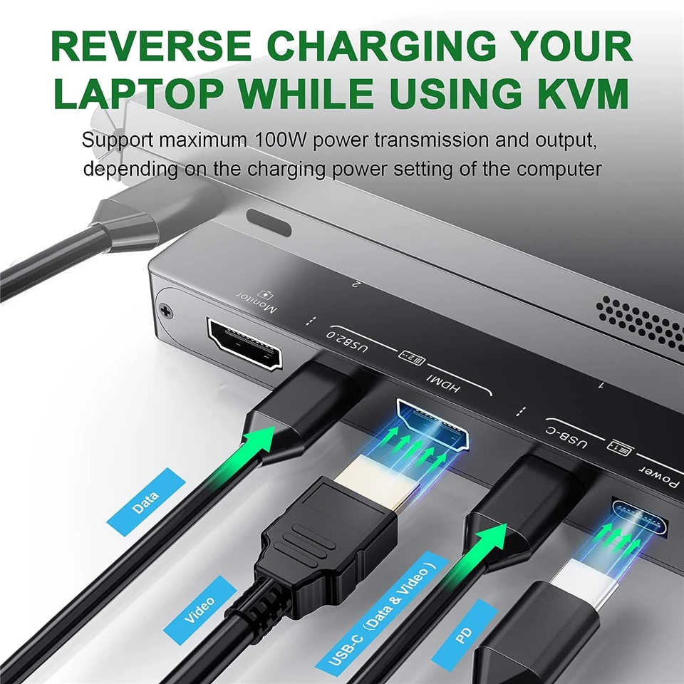 Soporta hasta 87W de potencia para revertir la carga de la computadora portátil de la red, resolviendo completamente el problema de que el puerto de carga USB C esté ocupado al usar KVM.
