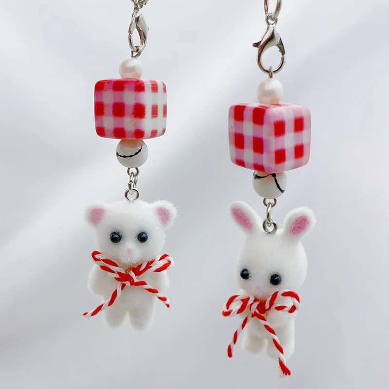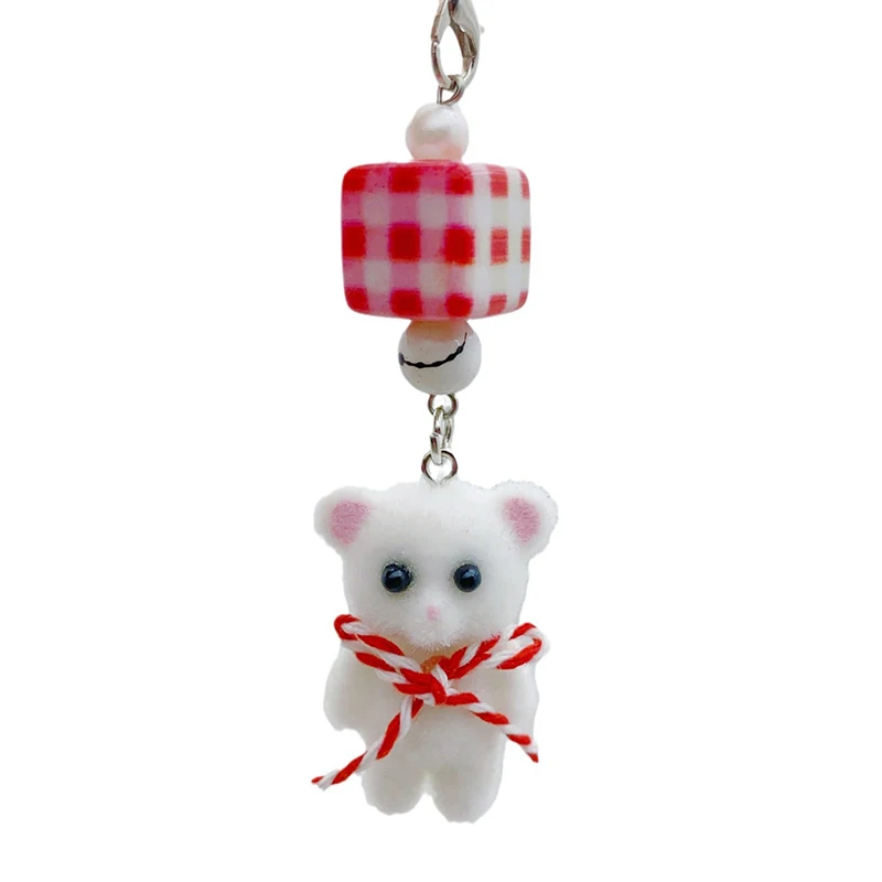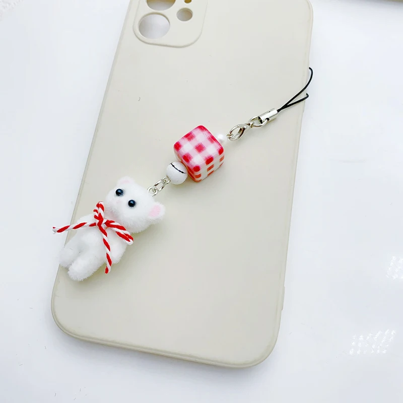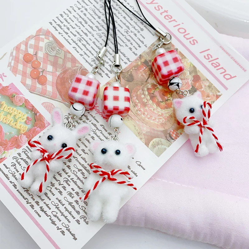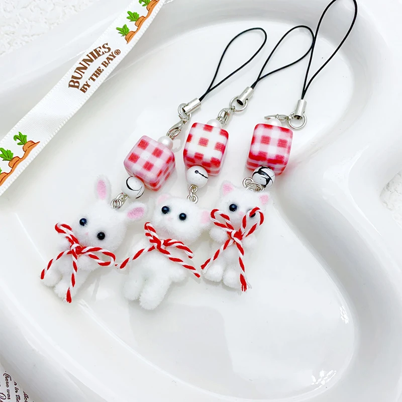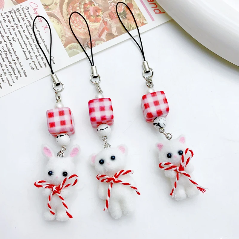 Comprar Navidad Kawaii 3D flocado gato teléfono cordón lindo conejo oso arco teléfono móvil cadena teléfono móvil Correa llavero bolsa colgante