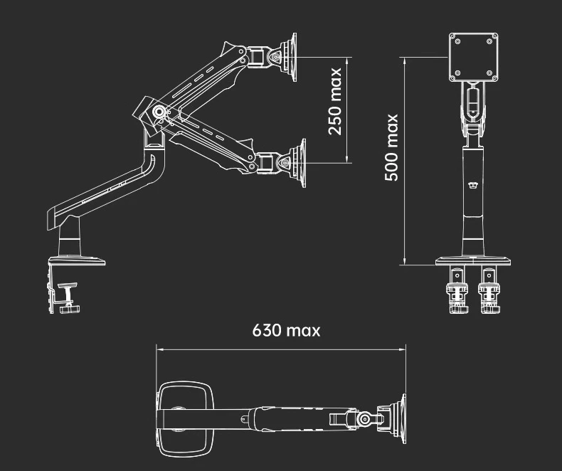 - Extensión horizontal máxima 24,8 ” (630 mm)