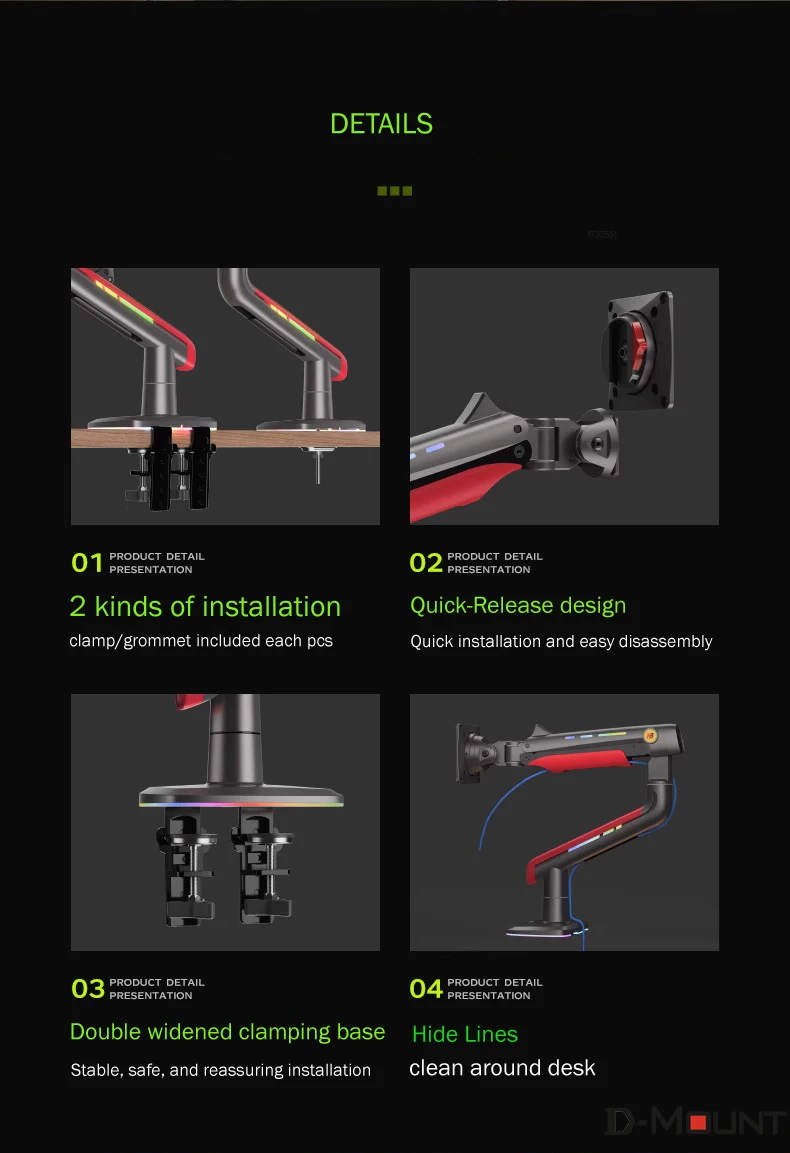 --nuestra respuesta: para el soporte del brazo de resorte de gas NB, primero debe finalizar la instalación y conectar el monitor al soporte,luego sujete la pantalla para presionar el brazo.