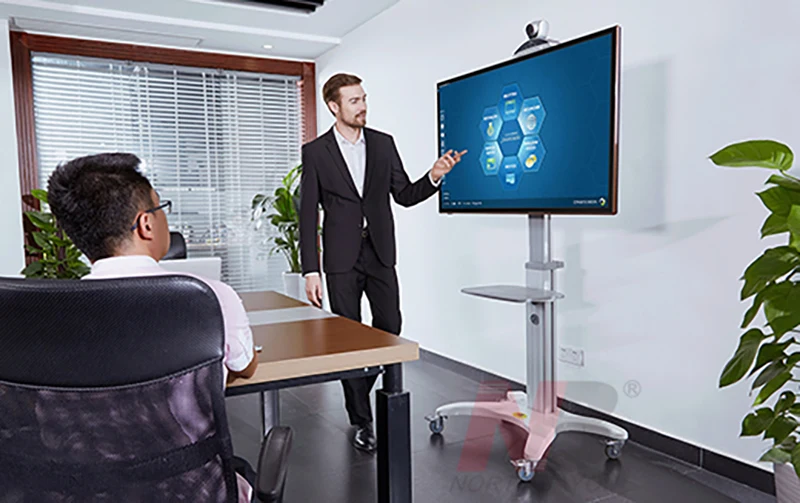 Carrito de TV móvil NB de aleación de aluminio de 32 ~ 65 pulgadas, LED LCD de Panel plano, carro de TV de Plasma con estante AV y soporte para cámara