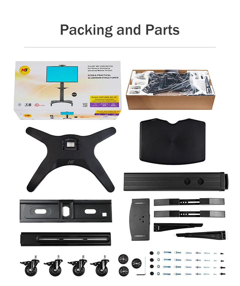 Comprar NB AVF1500-50-1P-Carro de montaje para TV de 32 a 65 pulgadas, carrito de aleación de aluminio con Panel plano LED, LCD, Plasma, con estante AV y soporte para cámara