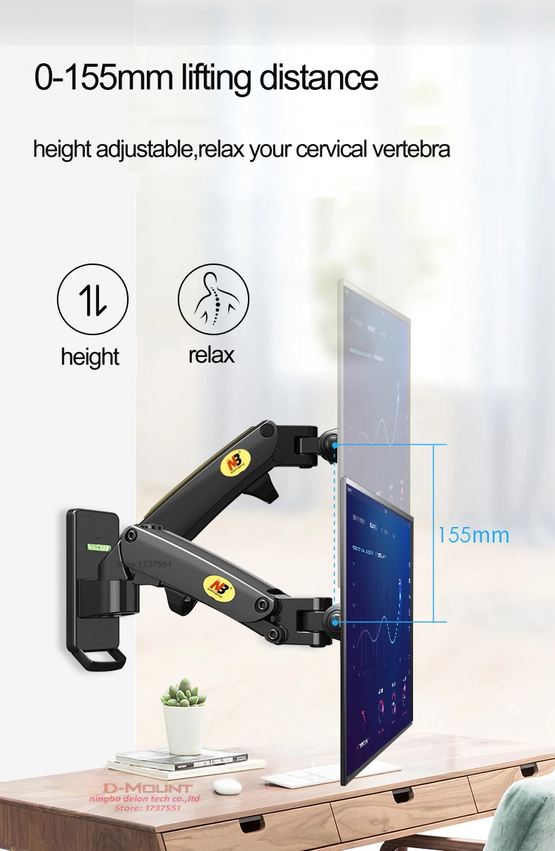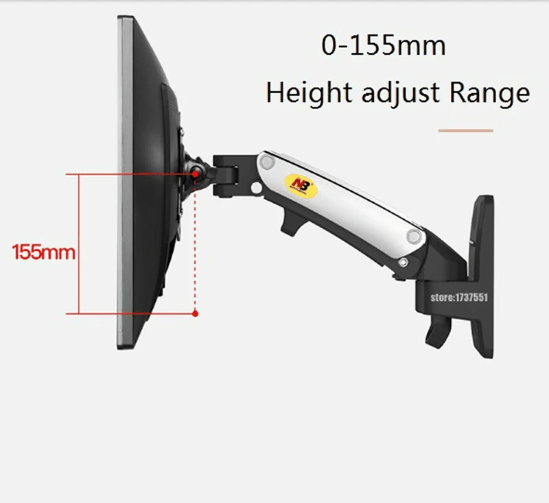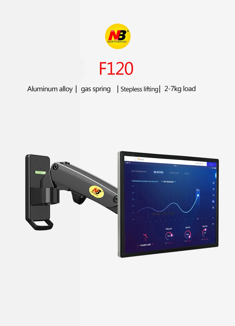 Comprar NB F120 17-27 "aluminio GS resorte de Gas 360 girar movimiento completo TV soporte de montaje en pared monitor lcd soporte de montaje en pared soporte de pantalla