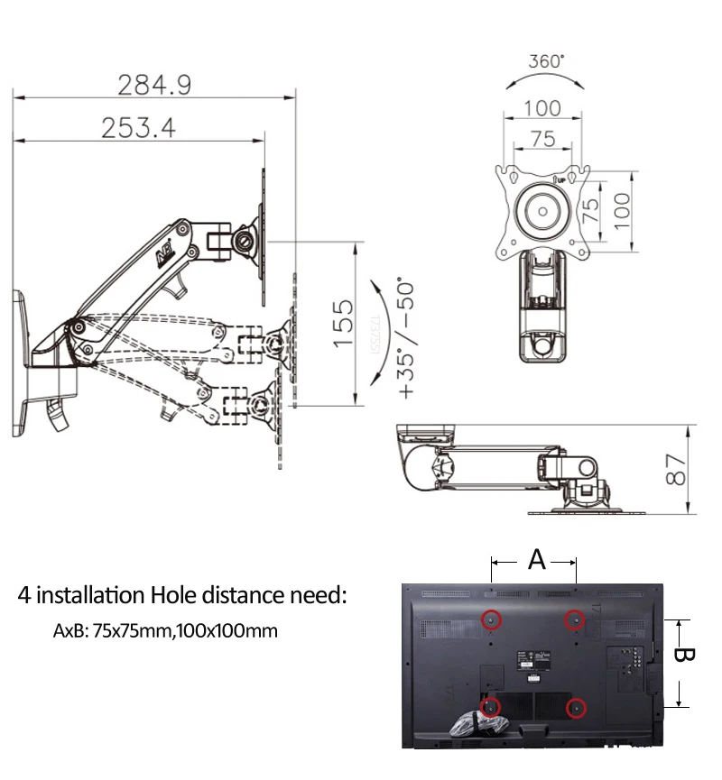 * Extensión única de un solo brazo, diseño compacto y retráctil para ahorrar espacio en la habitación.