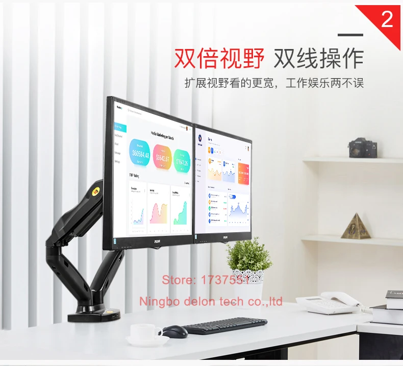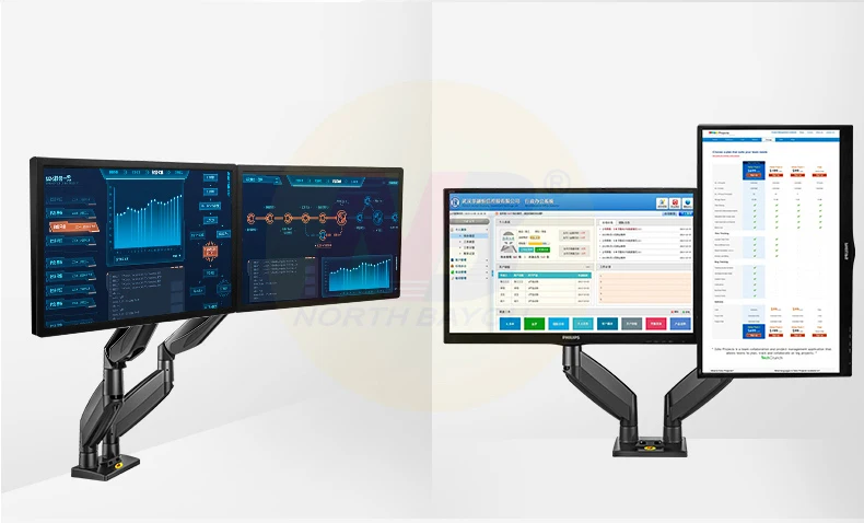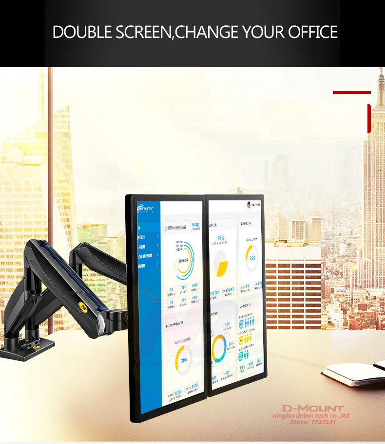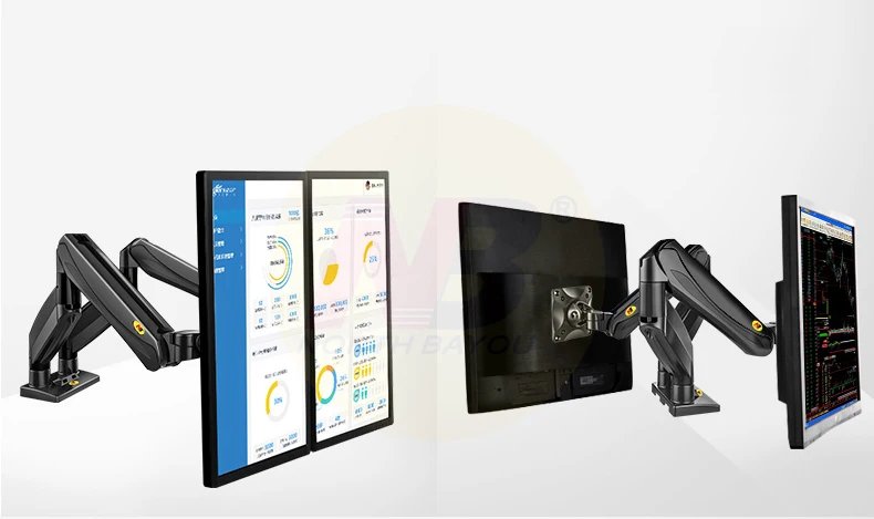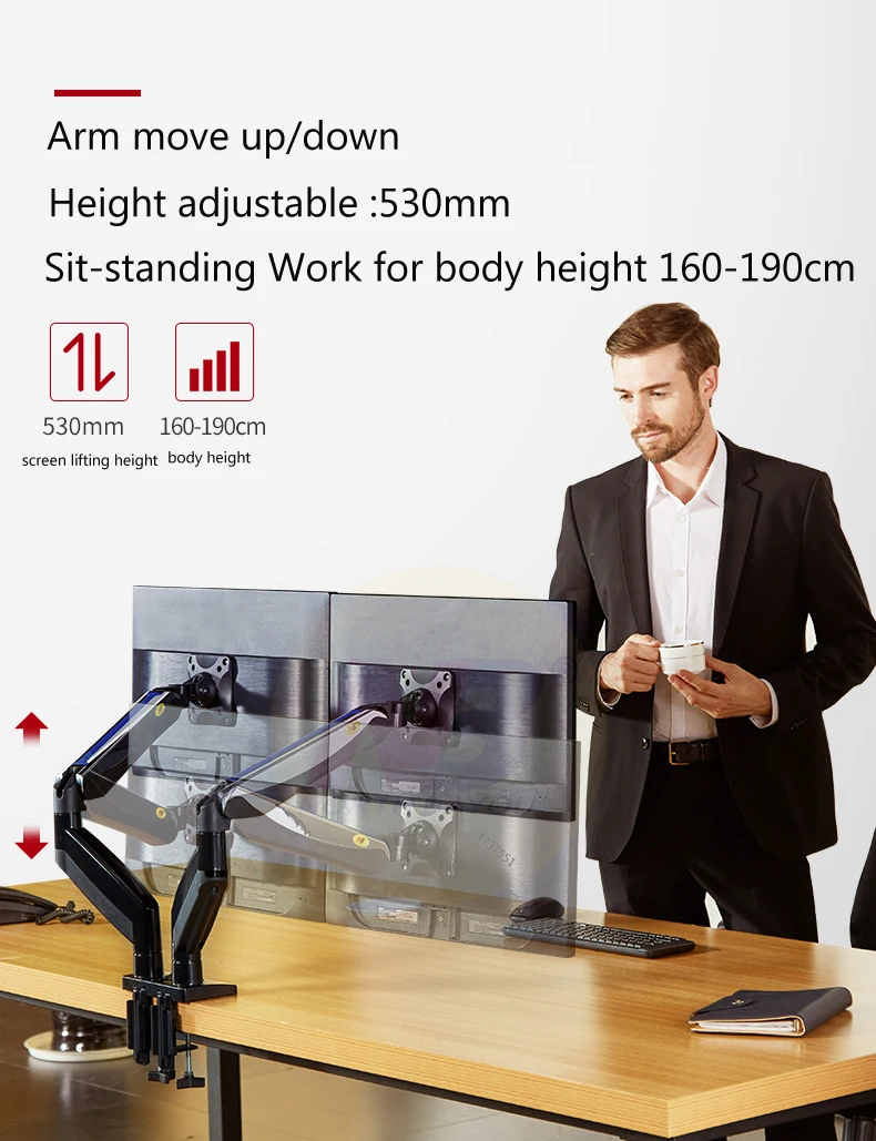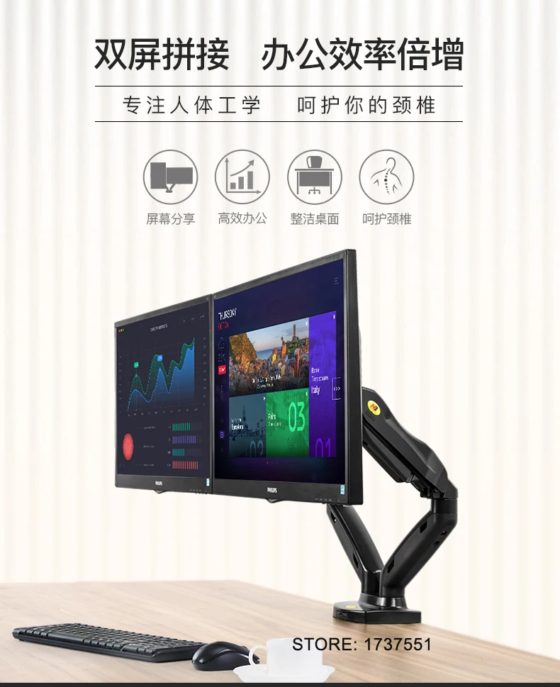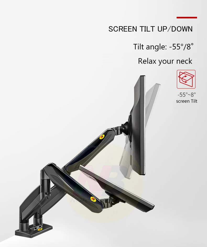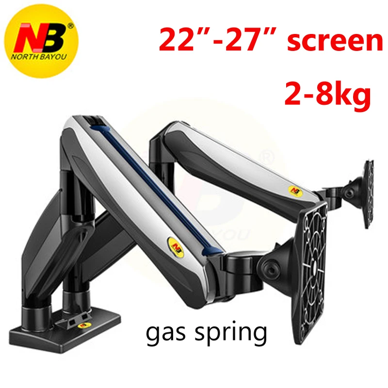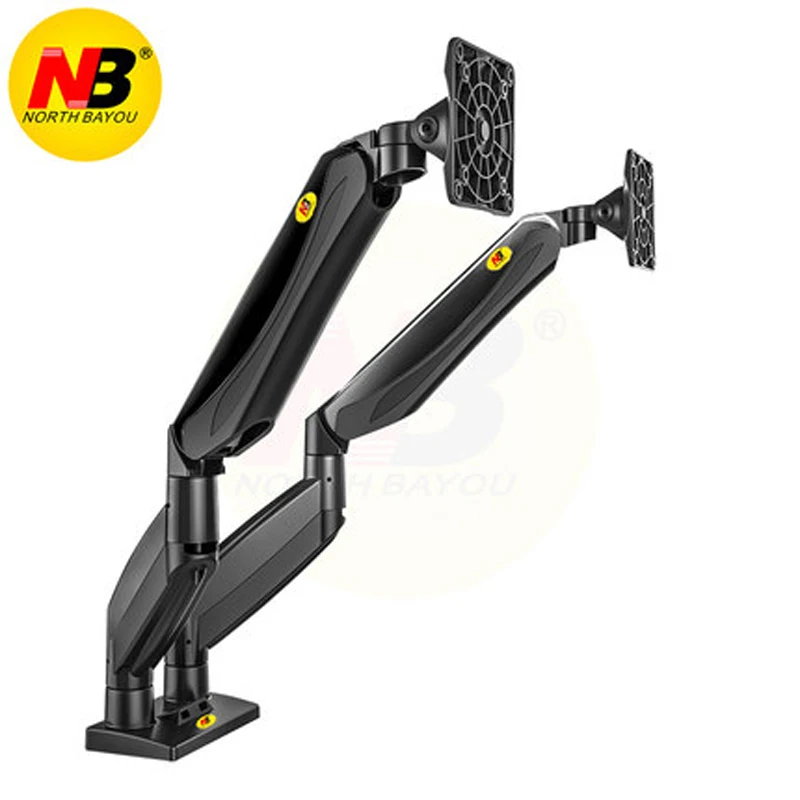 Comprar NB F185A soporte de Monitor LCD Dual de aluminio, brazo de resorte de Gas, soporte de computadora de movimiento completo, 22-27 pulgadas, 2-8kg, 2 USB3.0
