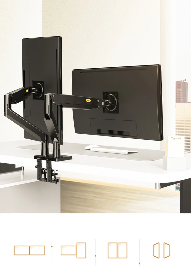 Comprar NB G35 aleación de aluminio 22 "-32" montaje de Monitor LED LCD Dual brazo de resorte de Gas soporte de Monitor de movimiento completo carga de soporte 3-12 kg cada uno
