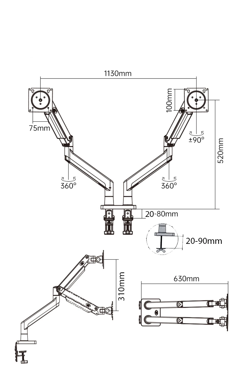 Comprar NB G35 aleación de aluminio 22 "-32" montaje de Monitor LED LCD Dual brazo de resorte de Gas soporte de Monitor de movimiento completo carga de soporte 3-12 kg cada uno