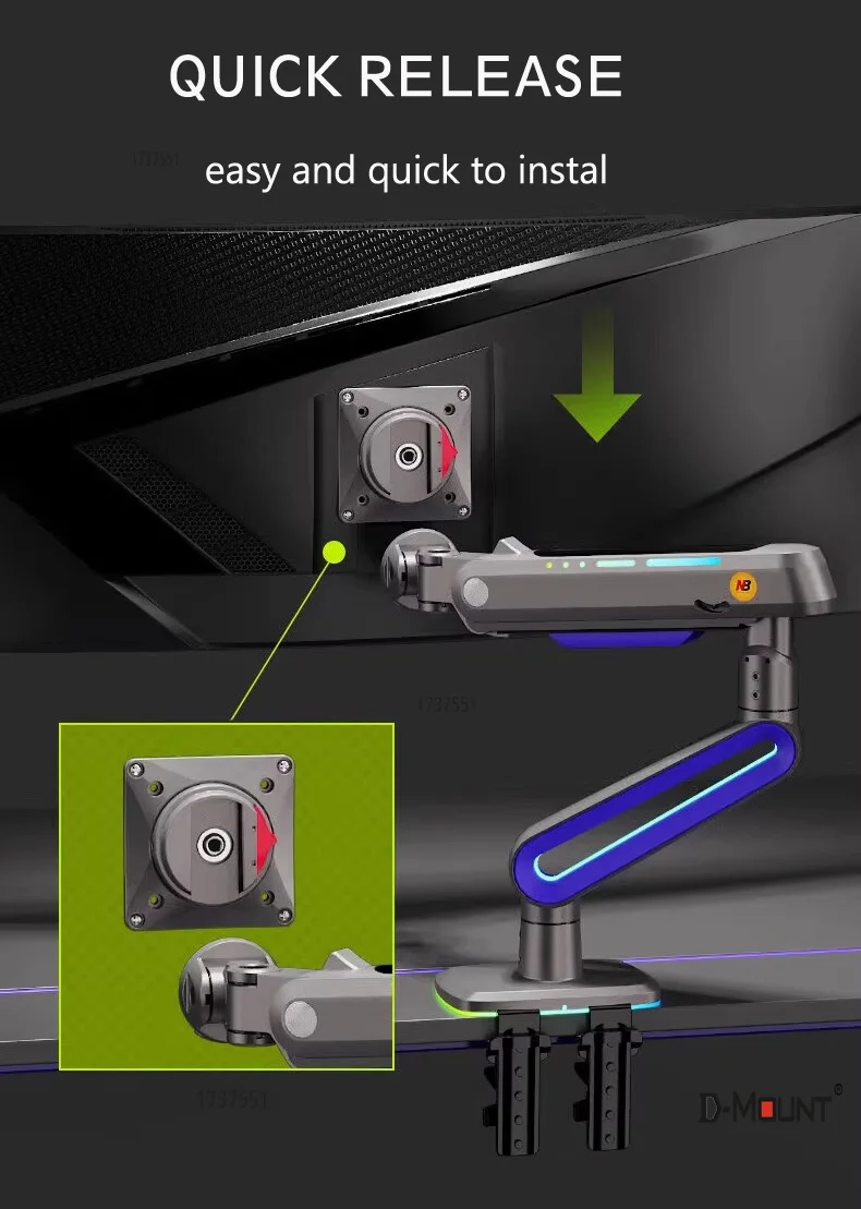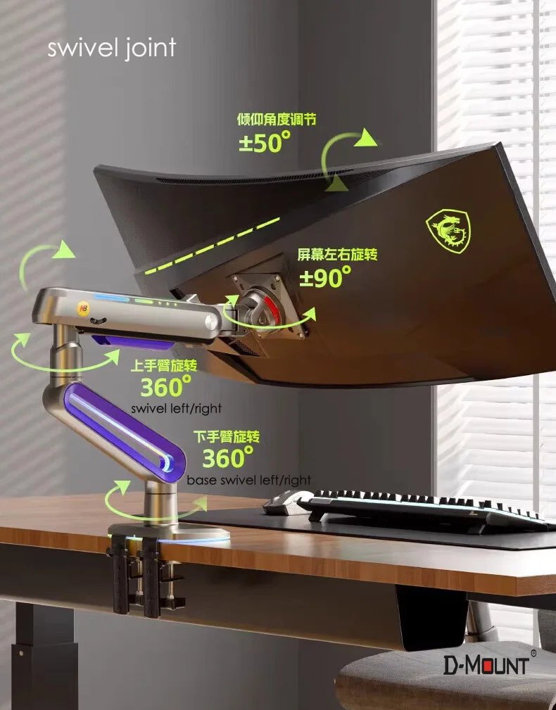 Comprar NB G70 L60 F6 E6 Pantalla de arco curvo de 32-60 pulgadas Soporte de brazo para monitor de juegos de escritorio Soporte de monitor ultraancho de 2-20 kg con luz RGB