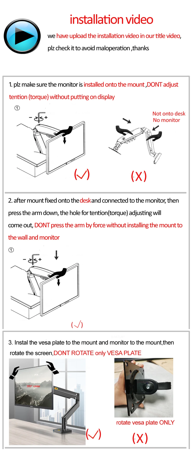 VESA: 75x75/ 100x100mm