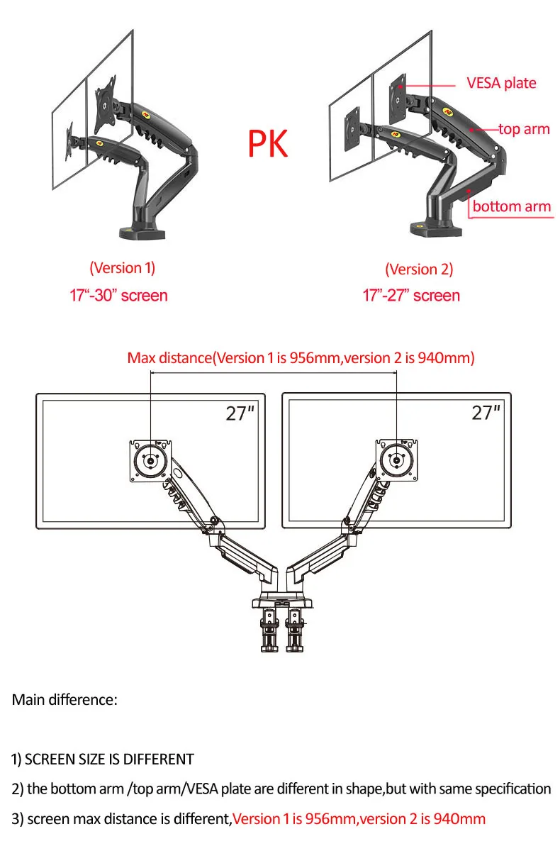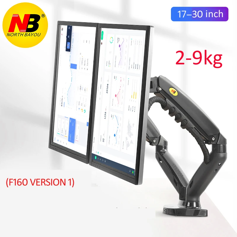 Comprar NB-Soporte de Monitor Dual F160 para ordenador, brazo de escritorio con resorte de gas de 17 "-27" 30 ", giratorio 360, 2-9KG, puerto USB 3,0, nuevo