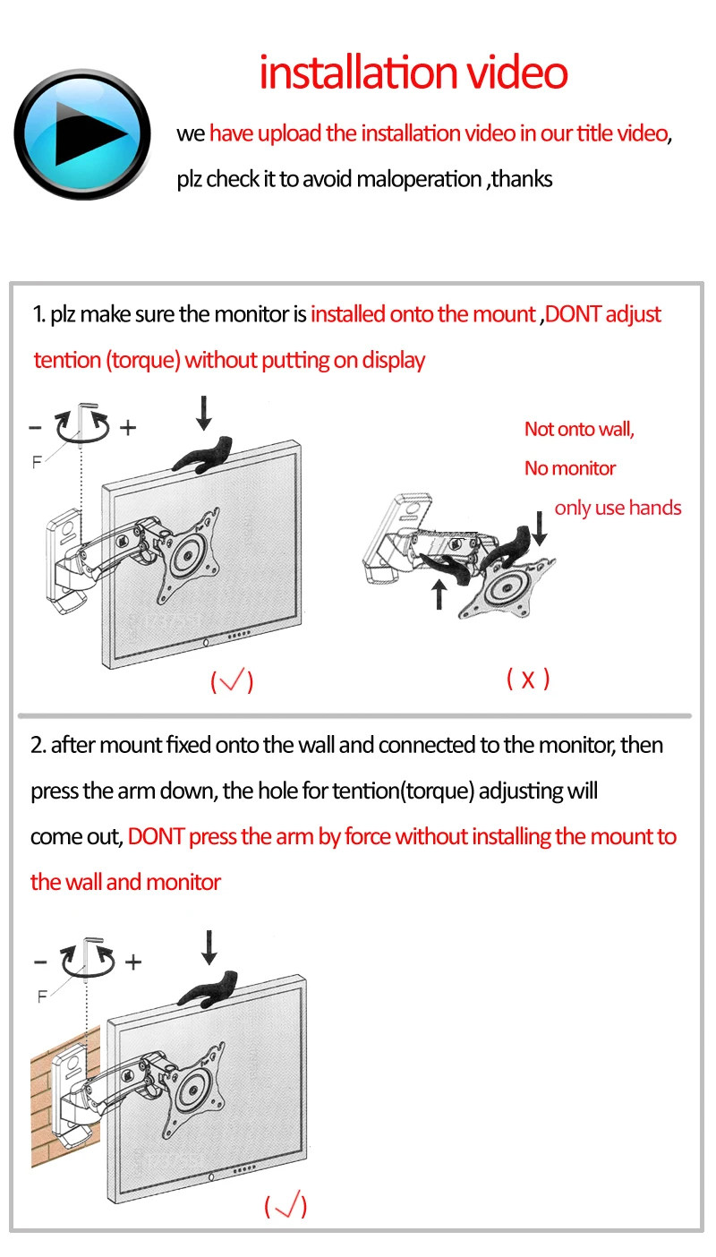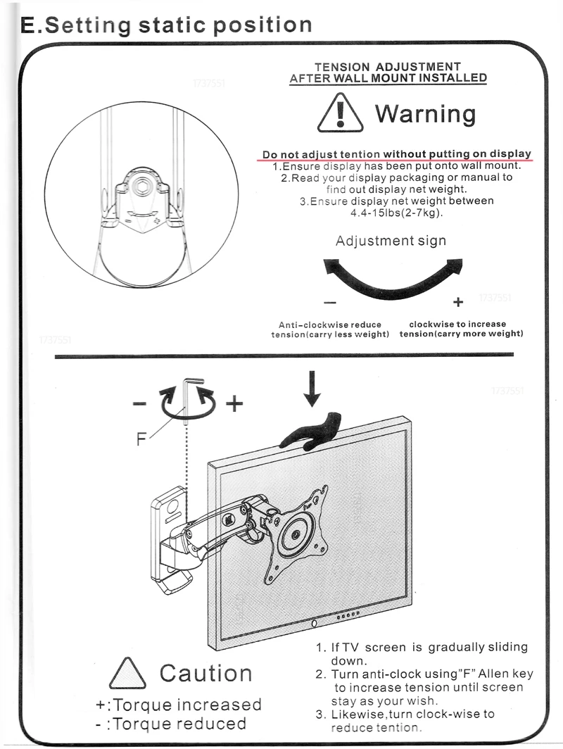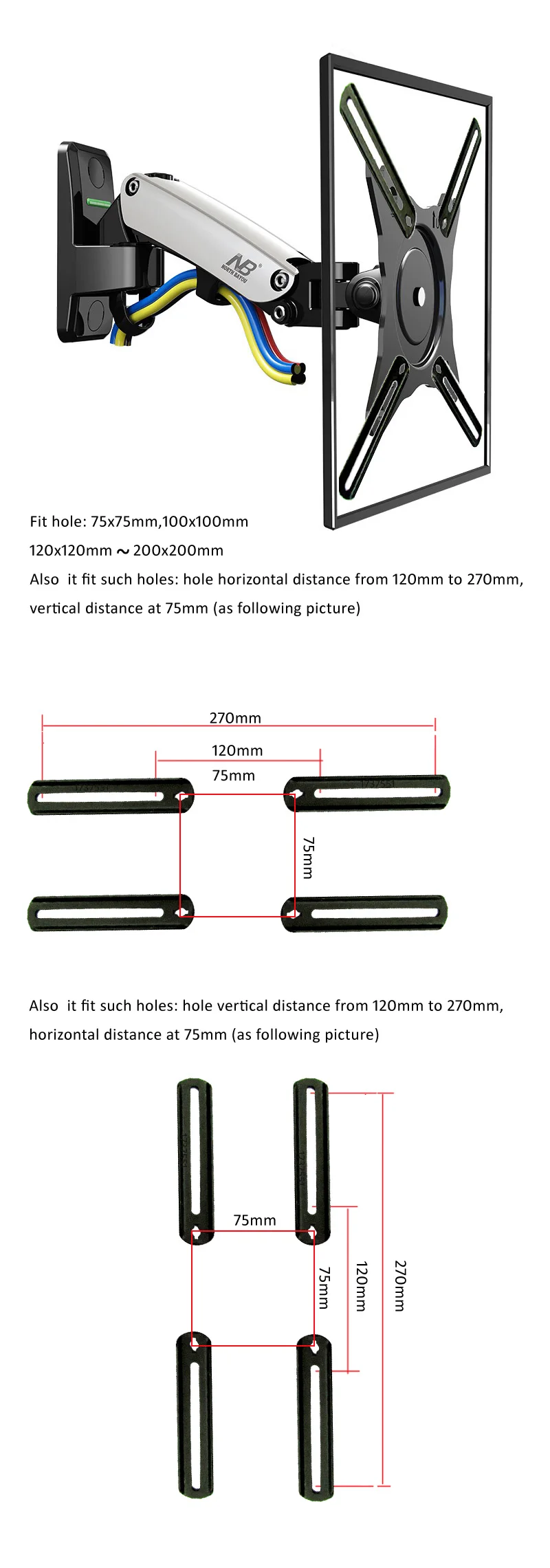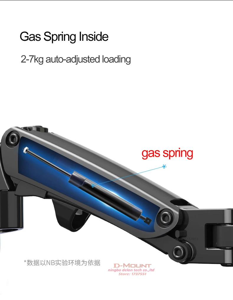 Soporta un peso máximo de 4,4-15 libras (2-7 kg)(por favor, asegúrese de que su pantalla está dentro de este rango, o el resorte de gas del montaje podría funcionar)