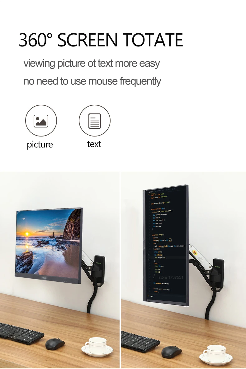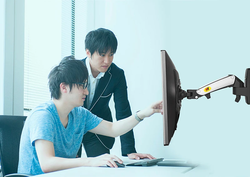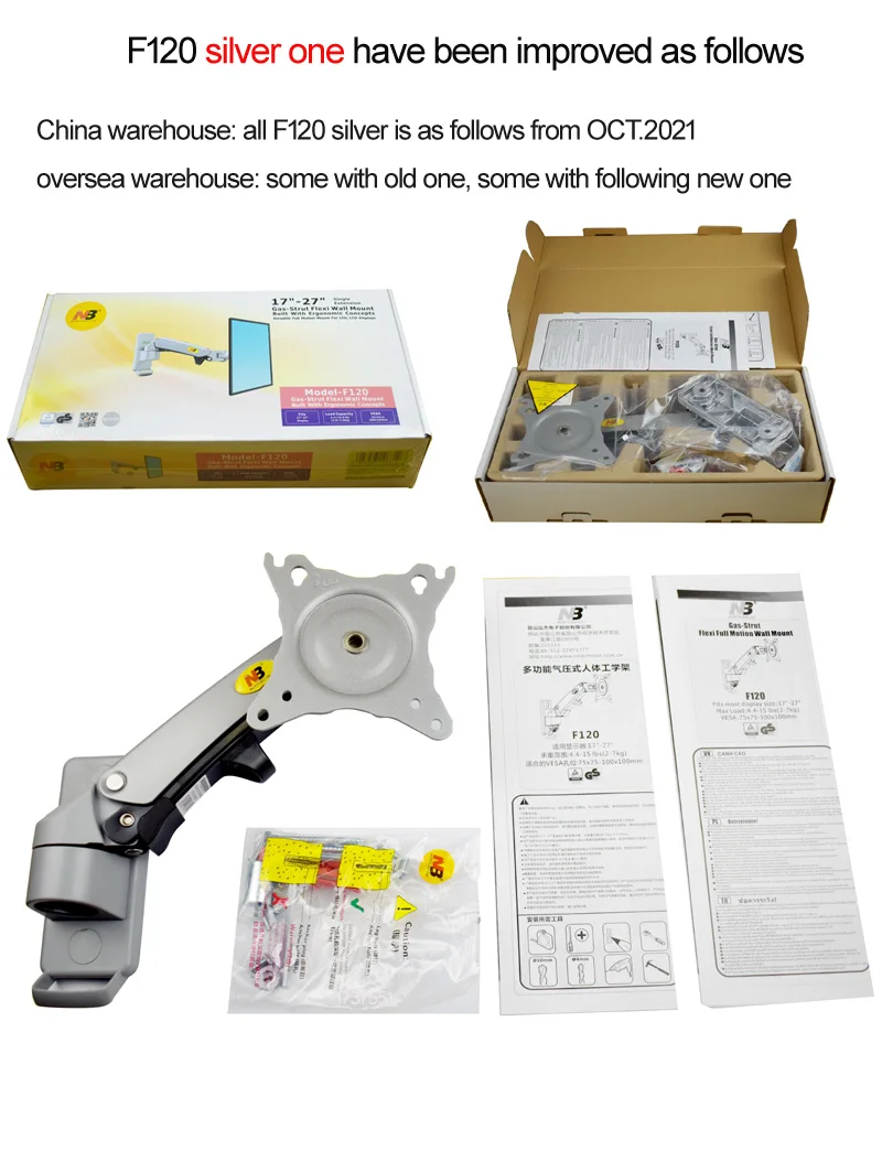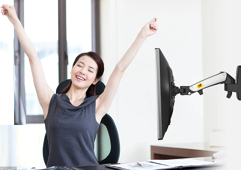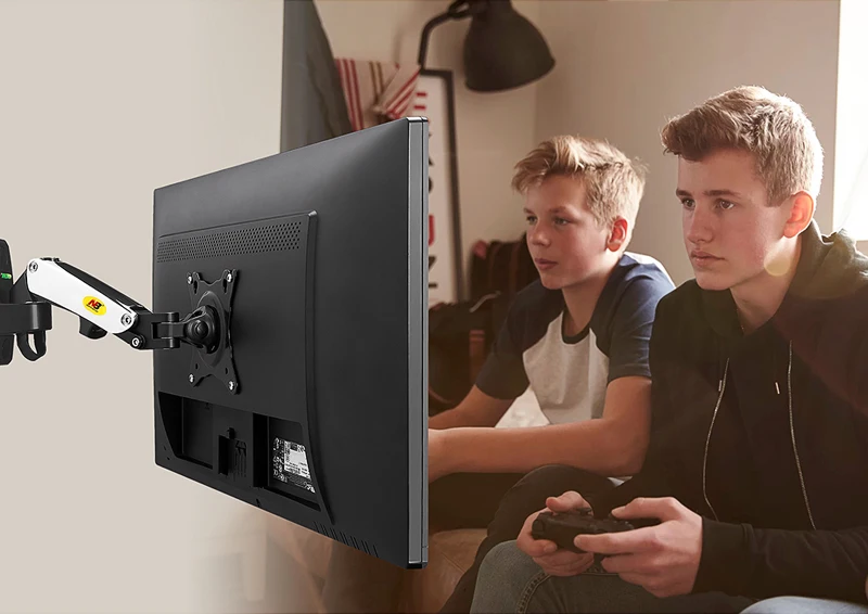 Comprar NB-soporte para Monitor LCD F120 de 17-27 ", resorte de Gas, movimiento completo, soporte de montaje en pared de TV, brazo de aluminio, plata, 360 giratorio