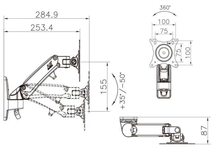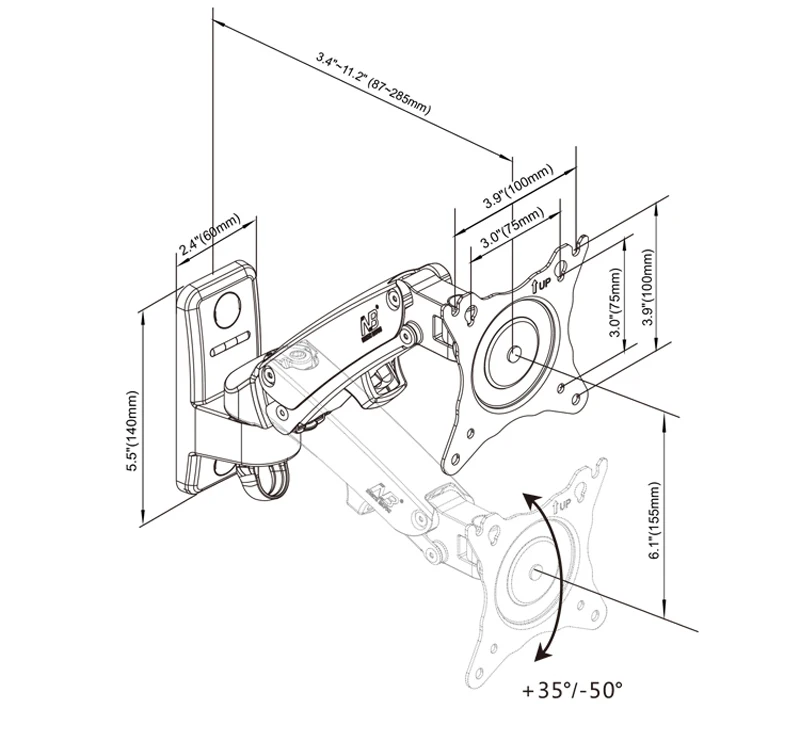 * Extensión única de un solo brazo, diseño compacto y retráctil para ahorrar espacio en la habitación.