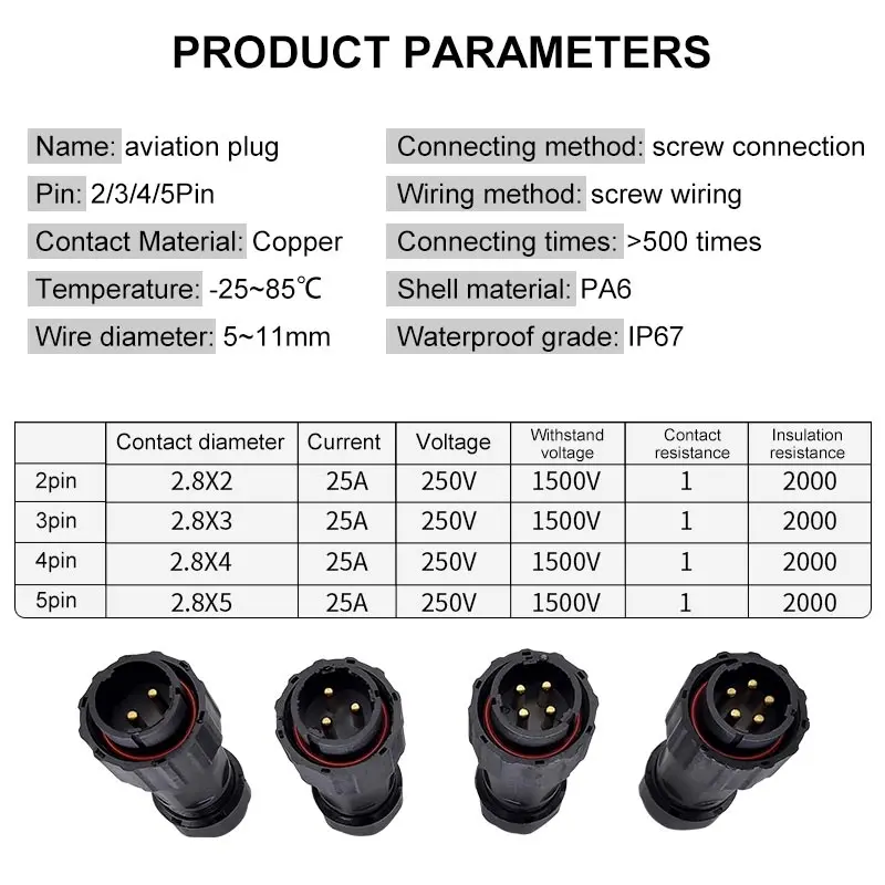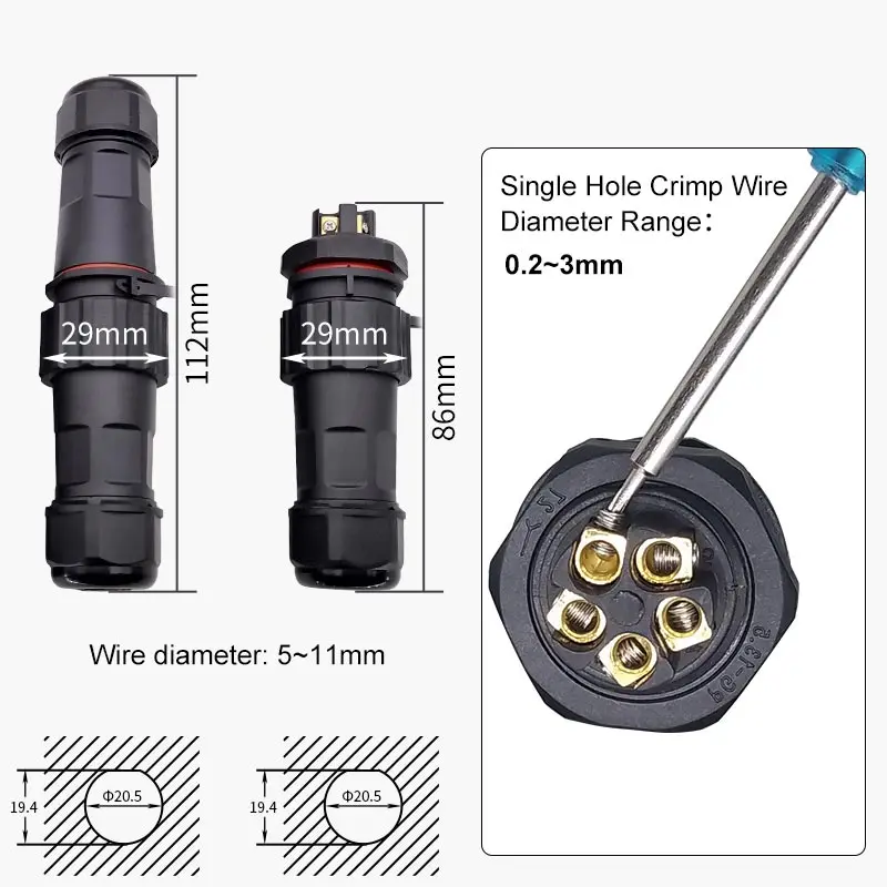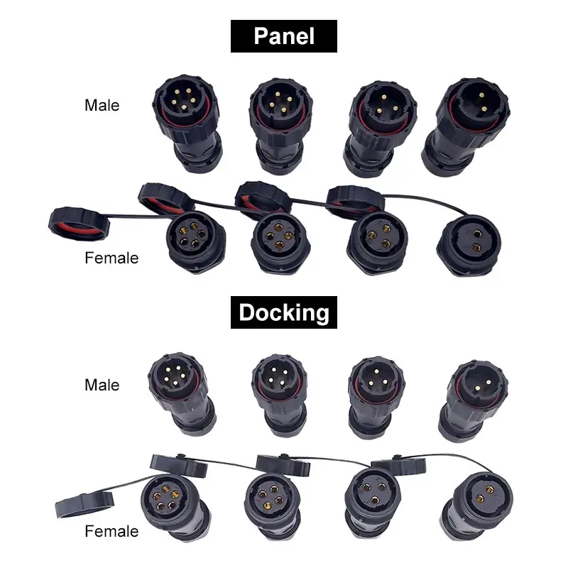 NC20 enchufe de aviación impermeable sin soldadura 2/3/4/5 pines enchufe de conexión de tornillo macho hembra conector de acoplamiento Panel tuerca trasera IP67