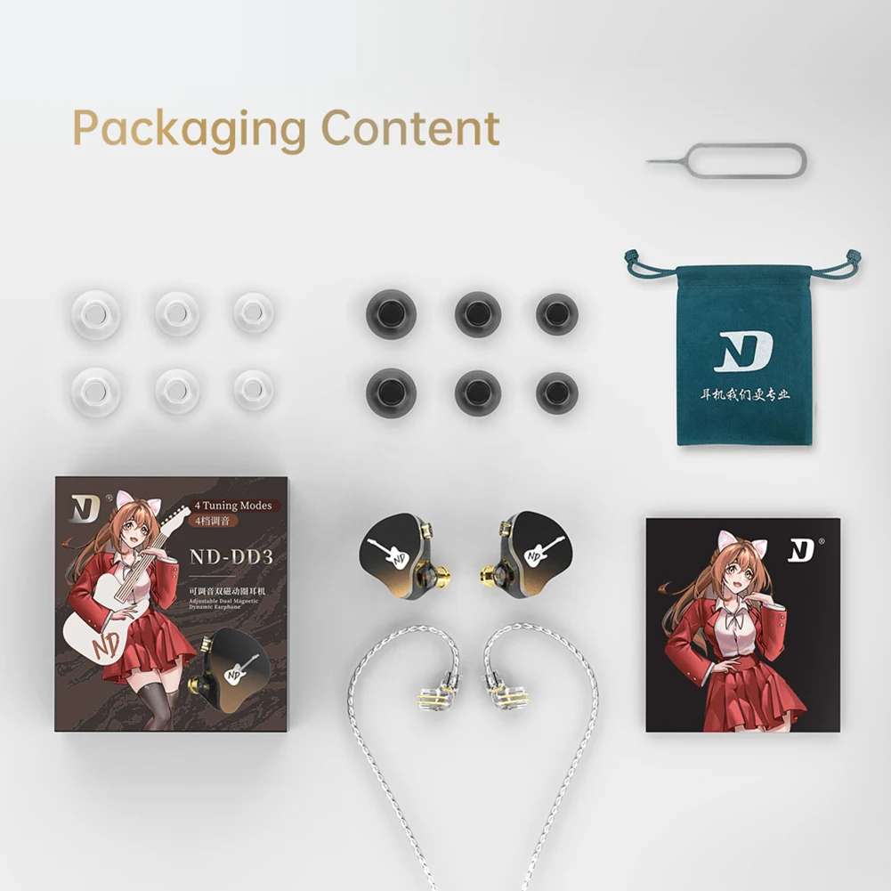 Característica:1. Experiencia de sonido personalizable:Utilizando la tecnología de cruce electrónico patentada de ND Acoustic Lab, estos auriculares con cable ofrecen cuatro opciones de ajuste diferentes con solo presionar un interruptor electrónico. Ajuste la firma del sonido para que coincida con sus preferencias personales y disfrute de una experiencia auditiva versátil que complementa varios géneros musicales.
