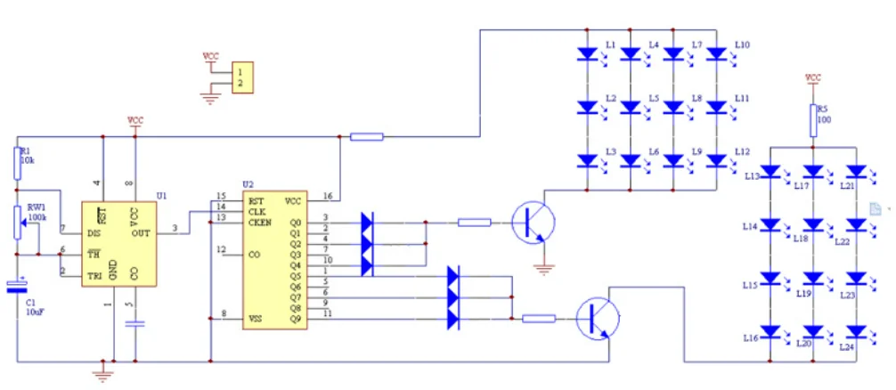 NE555 + CD4017 Kit de luces intermitentes de doble Color rojo y azul, práctica estroboscópica, aprendizaje, diseño de Suite electrónica DIY