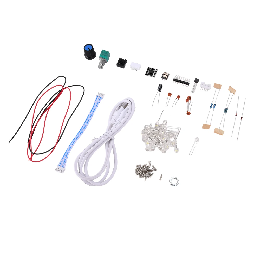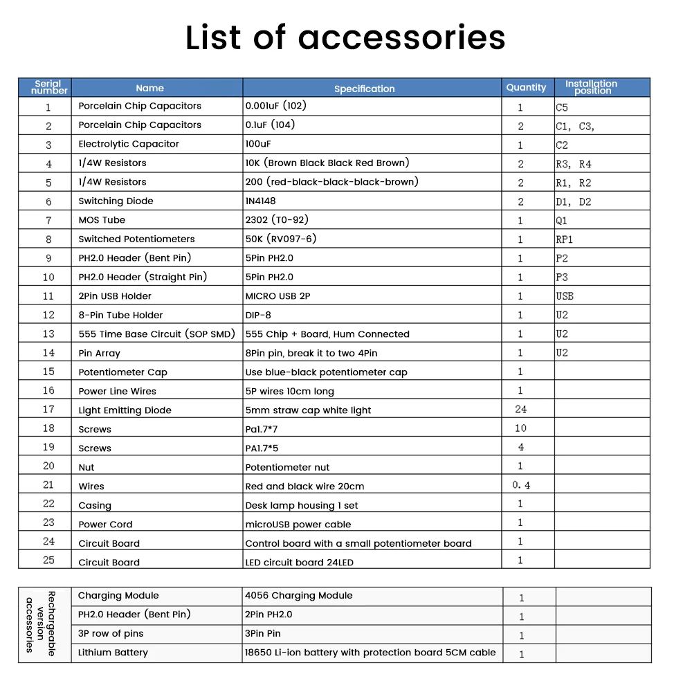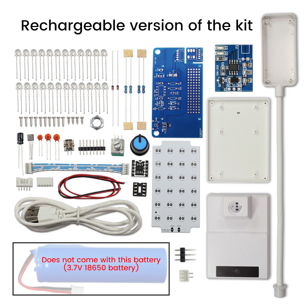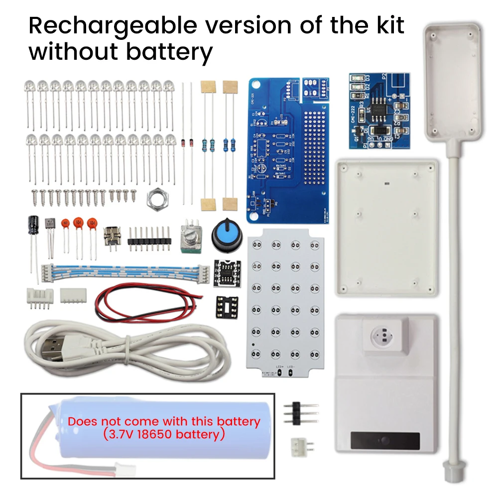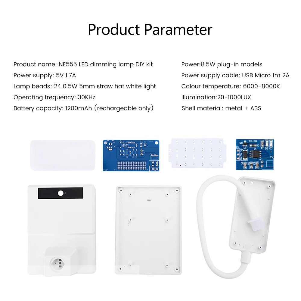 4.Especificaciones del producto: Kit de soldadura DIY para lámpara de escritorio regulable LED NE555, alimentado por cable USB Micro 1m 2A, 24 piezas 0.Cuentas de luz blanca con sombrero de paja de 5W y 5mm, temperatura de color: 6000-8000K, iluminancia: 20-1000LUX, las lámparas de escritorio LED se alimentan mediante un cable USB, fácil de usar.