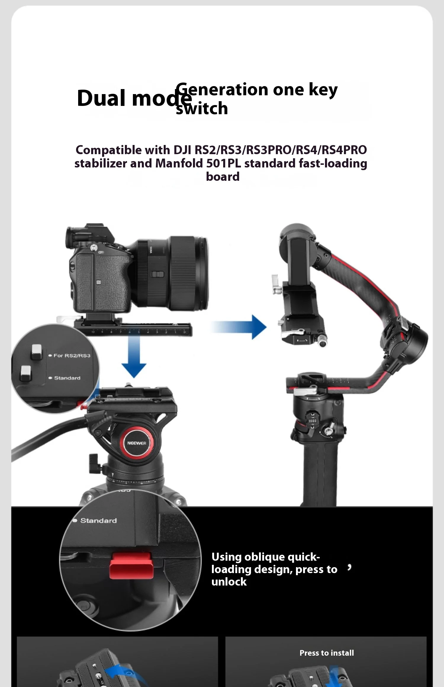 NEEWER TP74 Gimbal hidráulico con trípode de alta resistencia 360 ° Trípode profesional personalizado del soporte del estabilizador de la aleación de aluminio del movimiento del espejo