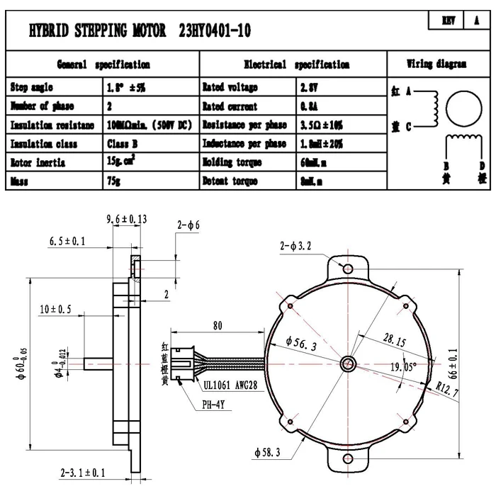 EspecificaciónLongitud del eje del Motor: 10mm0.8A 60mN m