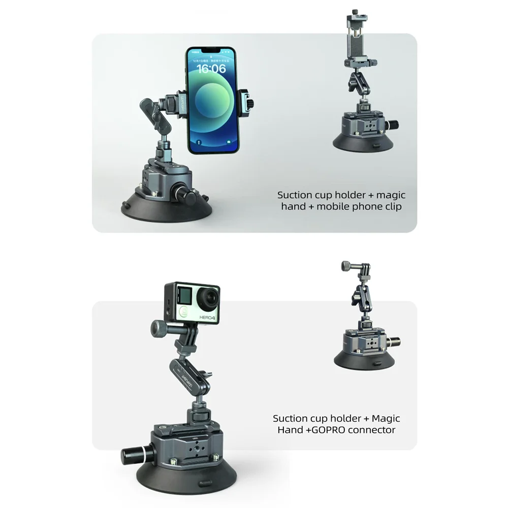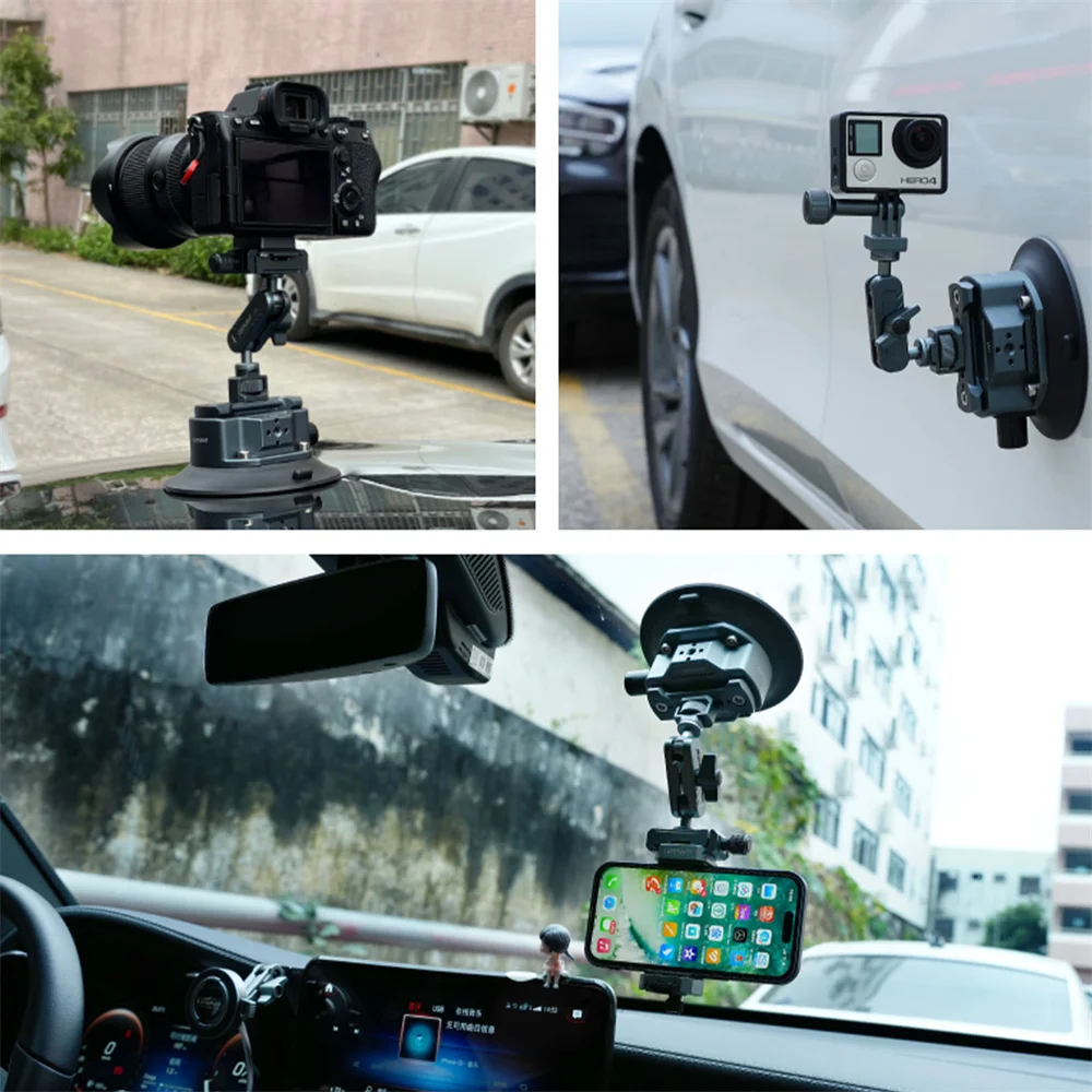 New Hand Pump Car Suction Cup Phone Action Camera Holder W NATO 360 Adjustable 1/4" 3/8" for Gopro Insta360 DSLR Action Camera