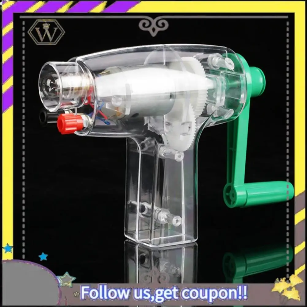 Amazing handheld electricity generator! Create power without batteries! Great for classroom physics teaching demonstrations.