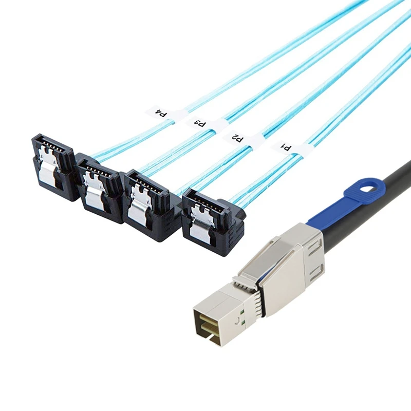 Comprar New Mini SAS HD SFF8644 To SATA Cable 90 degree 4 port 7Pin, SFF-8644 to 4 SATA 7pin 12GB for Hard Disk Data Server 1m 2m
