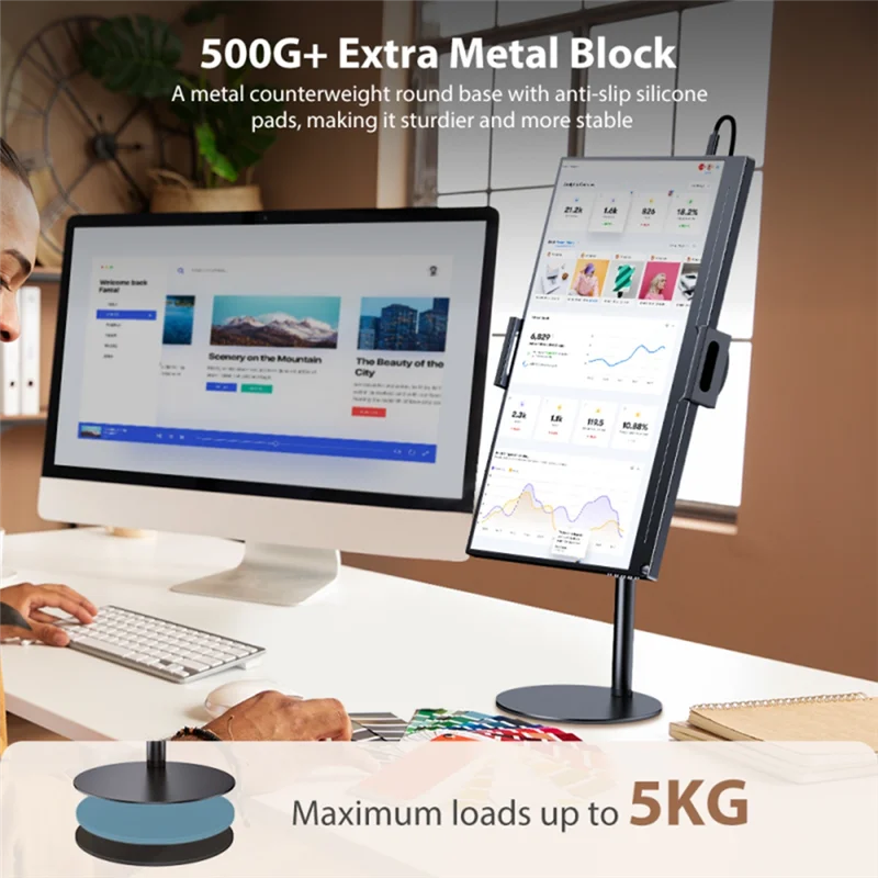 metal counterweight round base with anti-slip silicone pads, making it sturdier and more stable