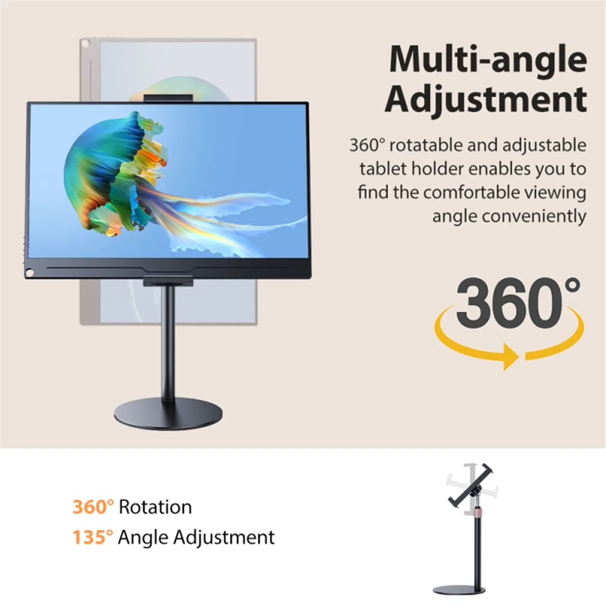 Multi-angle Adjustment 360° rotatable and adjustable tablet holder enables you to find the comfortable viewing