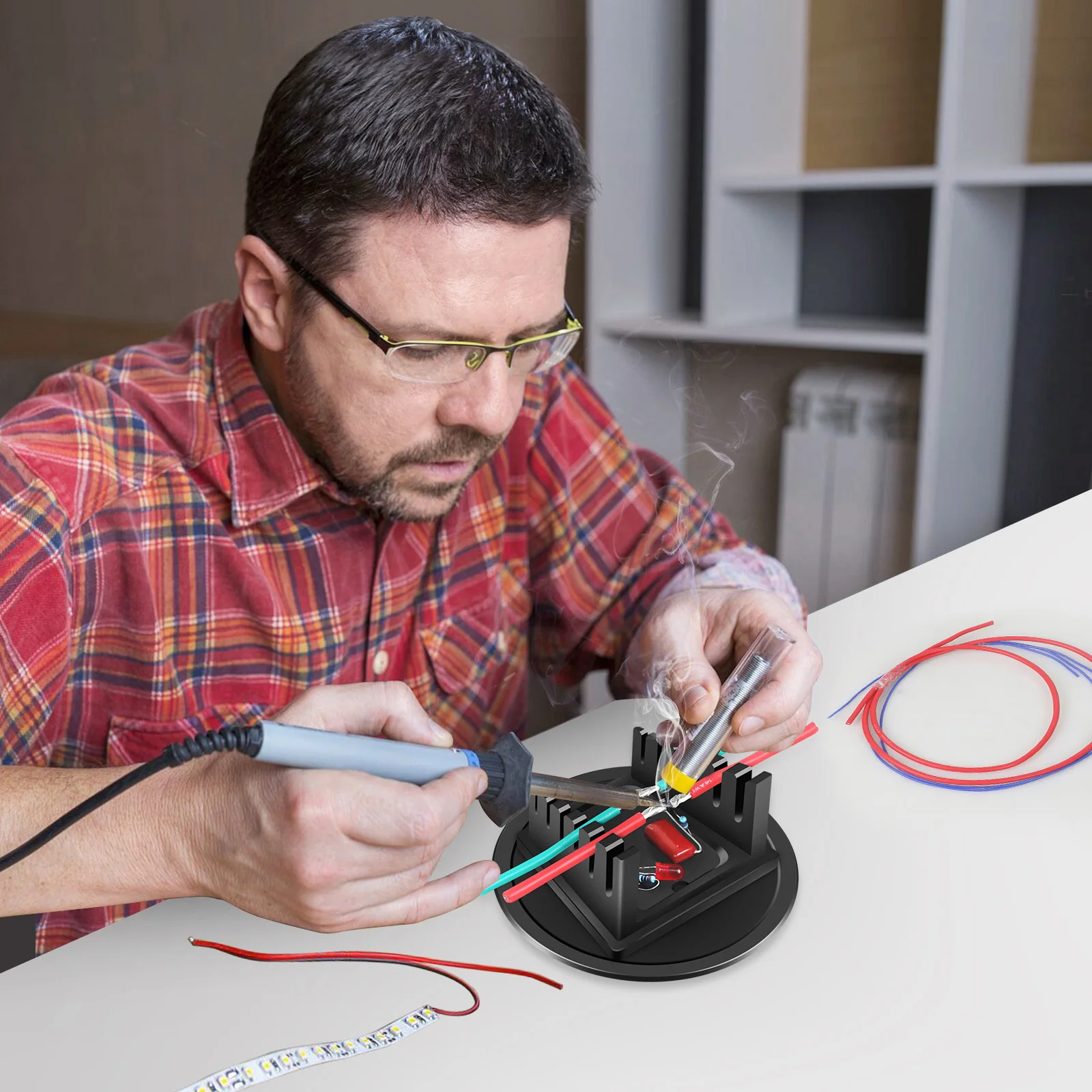 1. Made of metal material, an electric soldering iron can be placed during welding work without damaging the product.