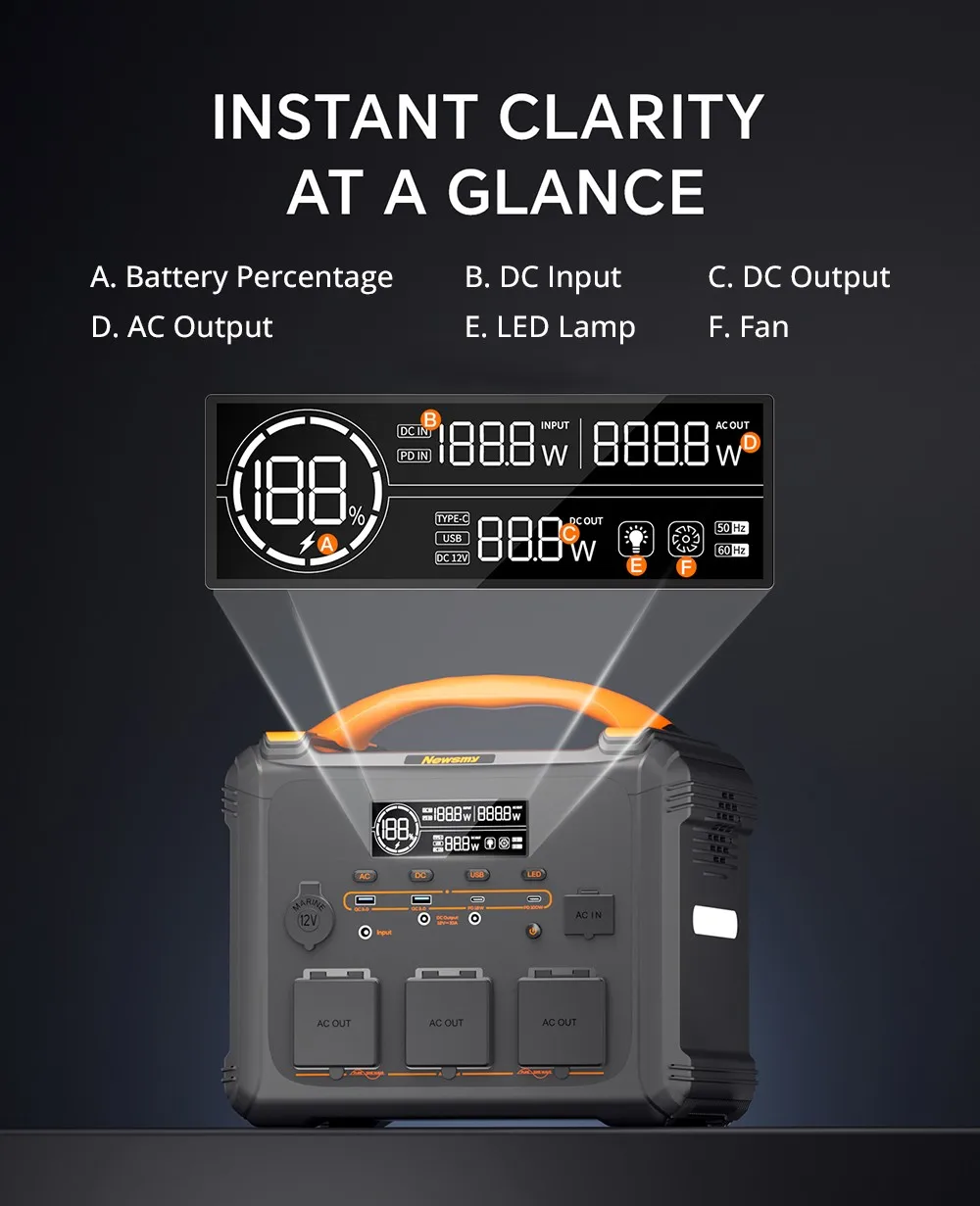 Estación de energía portátil NEWSMY S1210 1200W 1102.5Wh, batería LiFeMnPo4, carga rápida de 1,2 horas, salida PD100W, 230V/1200W (pico 2400W) onda sinusoidal pura