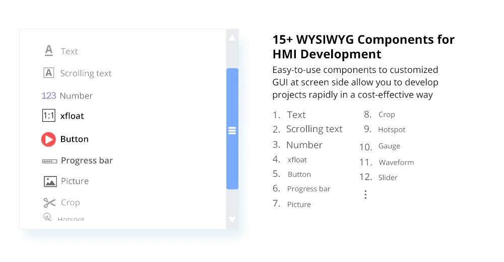 Más de 15 componentes WYSIWYG para el desarrollo de HMI