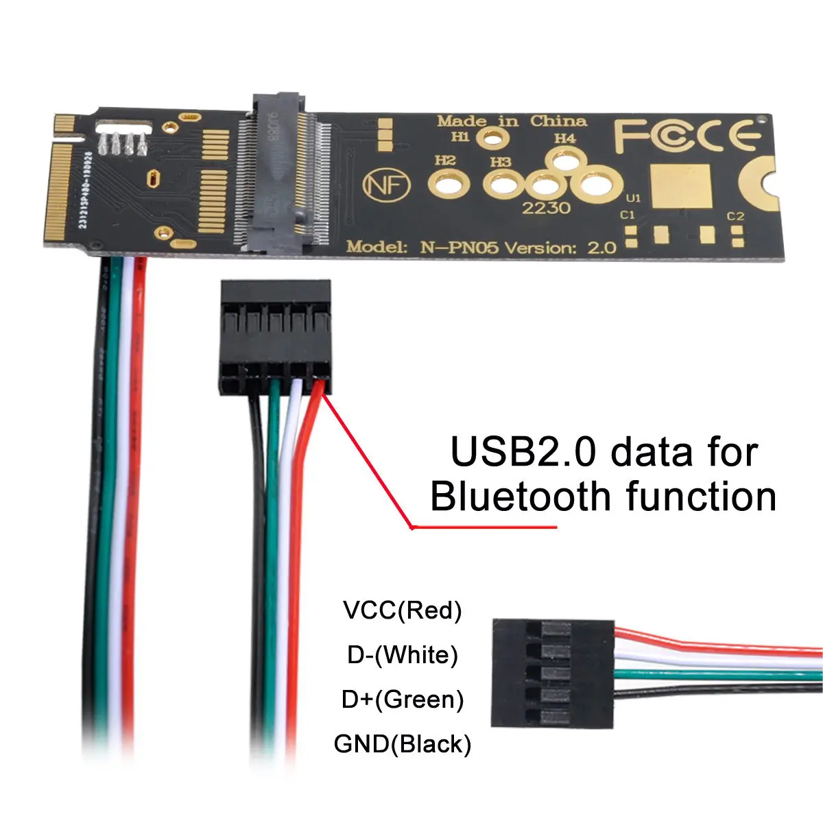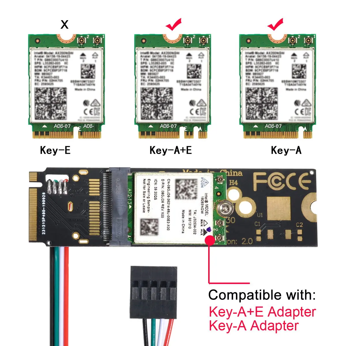 Tarjeta WiFi inalámbrica NGFF A/E-Key a M.2 NGFF Key-M NVME SSD Adaptador para AX200 Wifi 6 Bluetooth 5,1