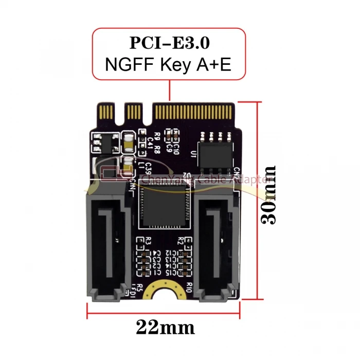 NGFF Key A + E PCI Express a SATA 3,0 6Gbps Adaptador de puertos duales Convertidor Tarjeta de extensión de disco duro JMB582