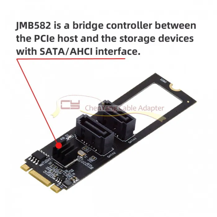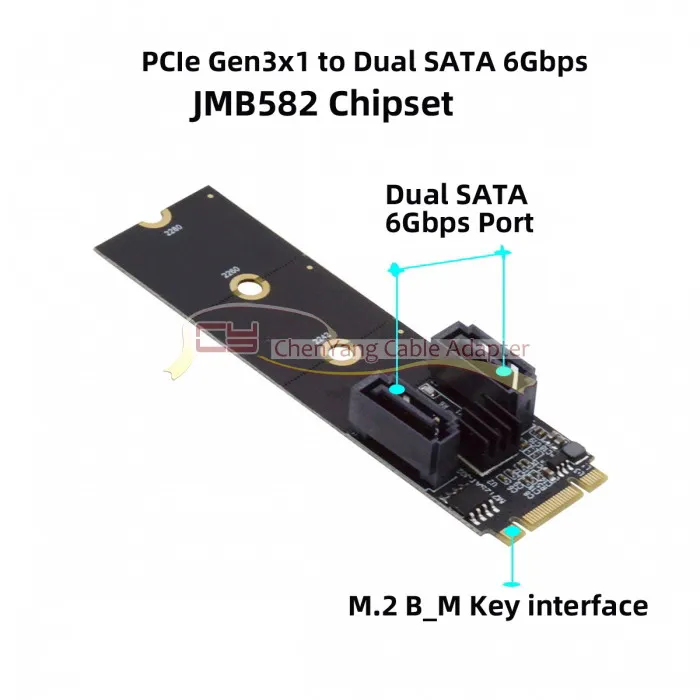 NGFF Key B+M PCI Express a SATA 3,0 6Gbps convertidor adaptador de puertos duales tarjeta de extensión de disco duro JMB582 2280