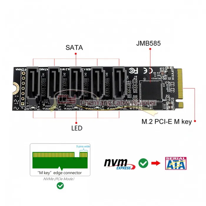 NGFF NVME M-Key PCI Express a SATA 3,0 6Gbps 5 puertos adaptador convertidor tarjeta de extensión de disco duro JMB585 2280