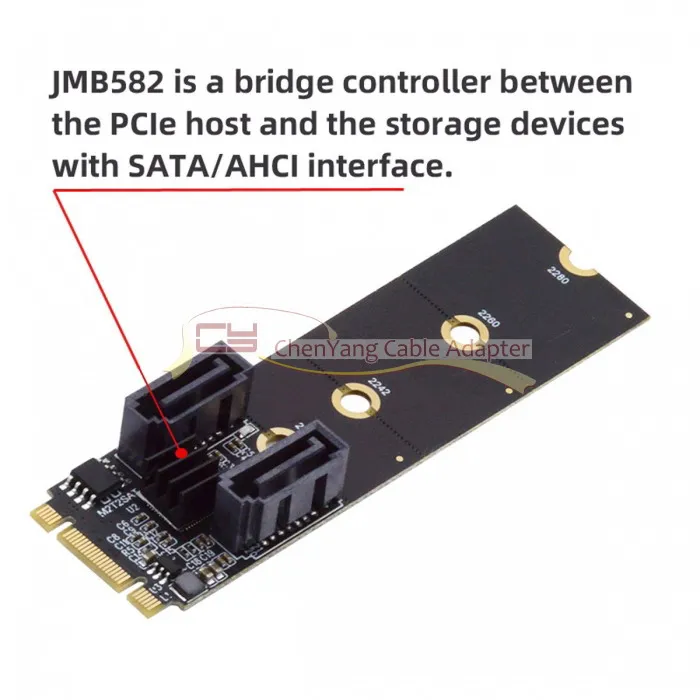 NGFF Key B+M PCI Express a SATA 3,0 6Gbps convertidor adaptador de puertos duales tarjeta de extensión de disco duro JMB582 2230 2242 2260 2280