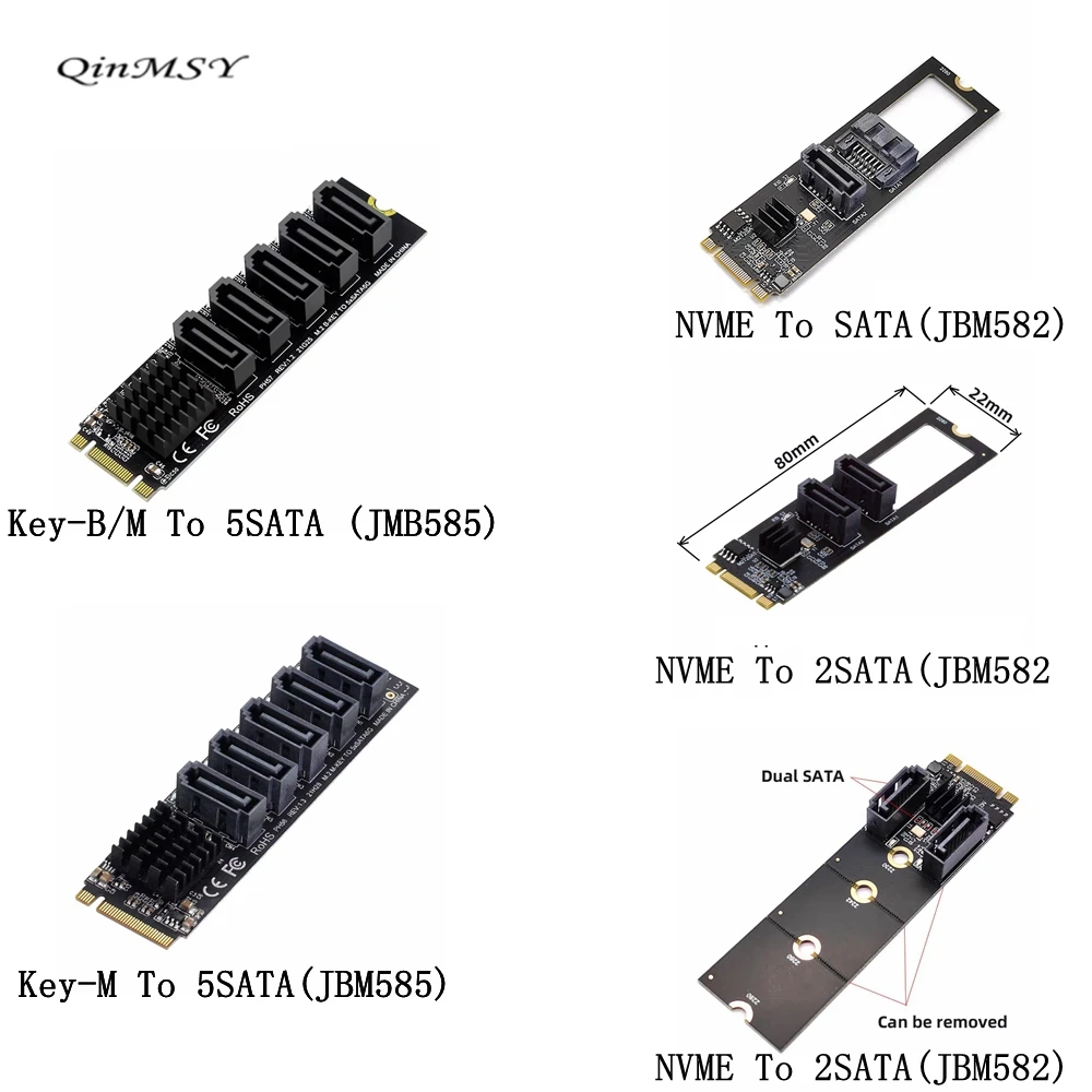 Comprar NGFF Key B+M a SATA 3.0 6Gbps 5 puertos Adaptador Convertidor PM Multi Puerto Seleccione JBM585 JBM 582 JMB575 2280