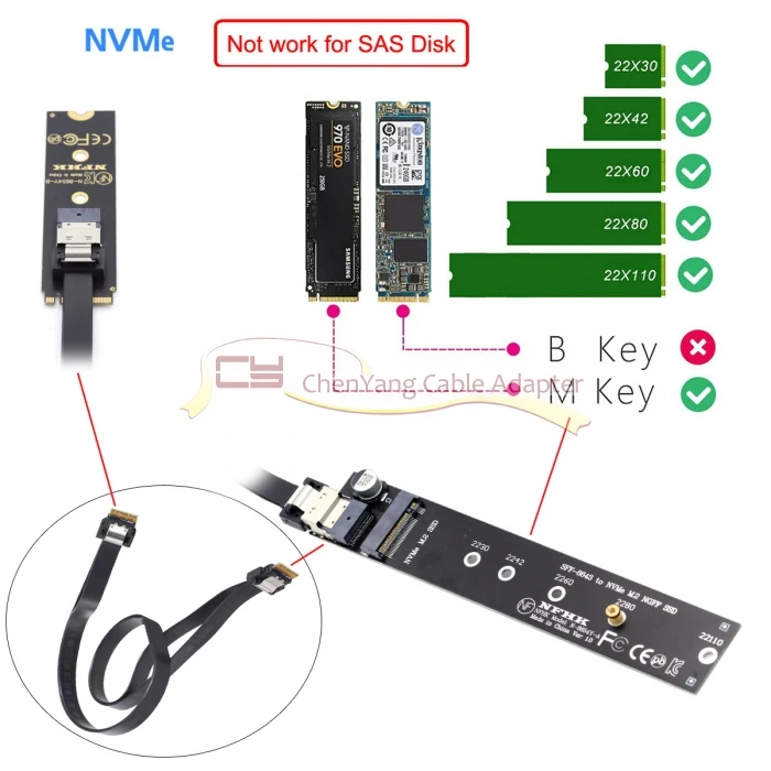 Comprar NGFF m-key NVME Cable de extensión macho a hembra, Conector de 40cm con SFF-8654 para placa base SSD 2280/22110