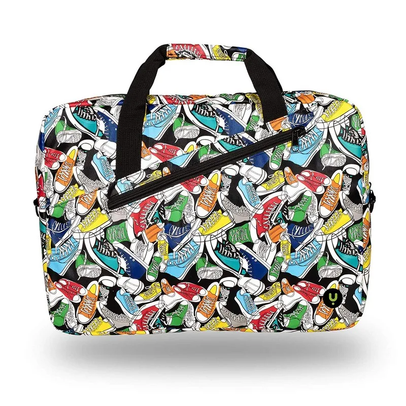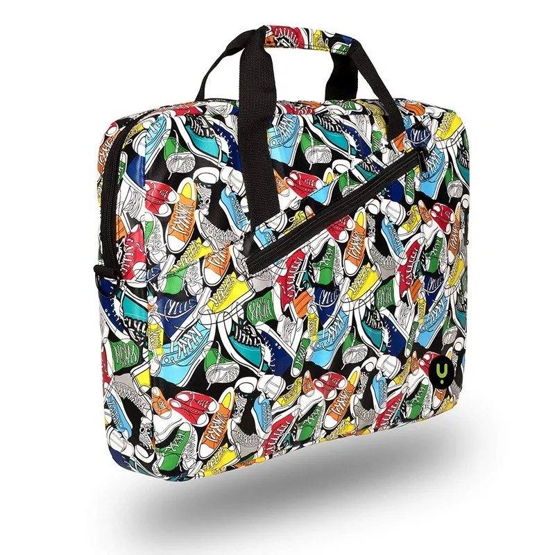 Exclusivo maletín para portátiles de hasta 15.16? con un original estampado repleto de sneakers de colores con el que caminarás millas. Monray Ginger Trainers, está pensado para las personas que aprecian la estética y la vanguardia, es el complemento perfecto para llevar a todas partes tu laptop.