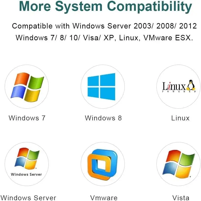 ✅Sistema operativo compatible: Windows 7/8/10/Visa, servidor Windows 2008/2012/20169, Linux, Centos/RHEL 6/7/8, Ubuntu 16/18/19/20, Debian 9/10/11, FreeBSD 10/11, Vmware ESX/ Esxi 6/7, SLSE 11/12, etc.
