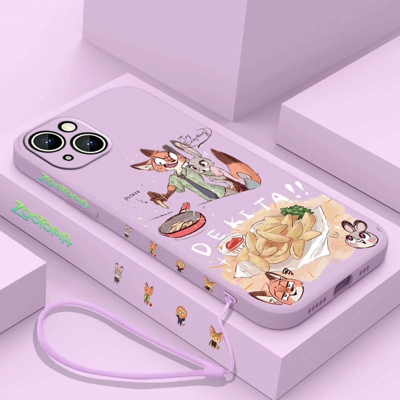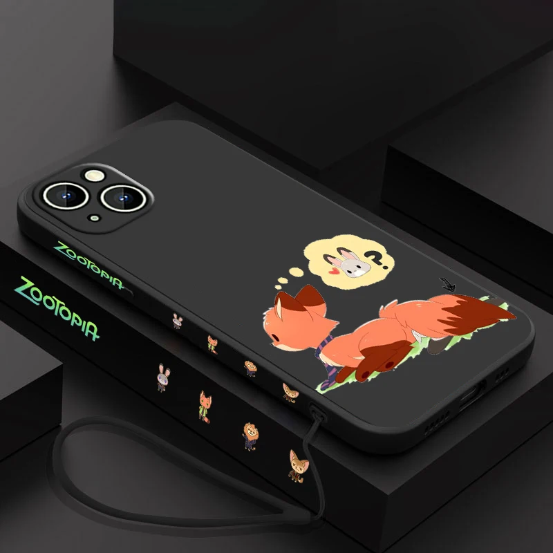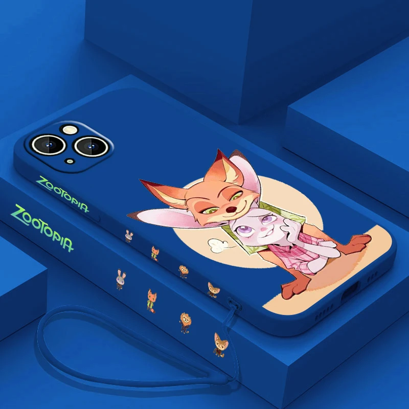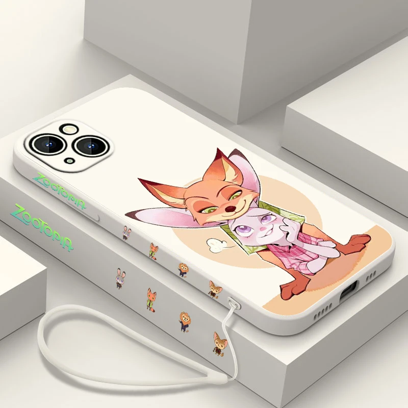 Nick Wilde funda de teléfono Judy Hopps para Apple iPhone, 15, 14, 13, 12, 11 Pro Max Plus, 8, 7 SE, funda líquida con Capa de cuerda izquierda