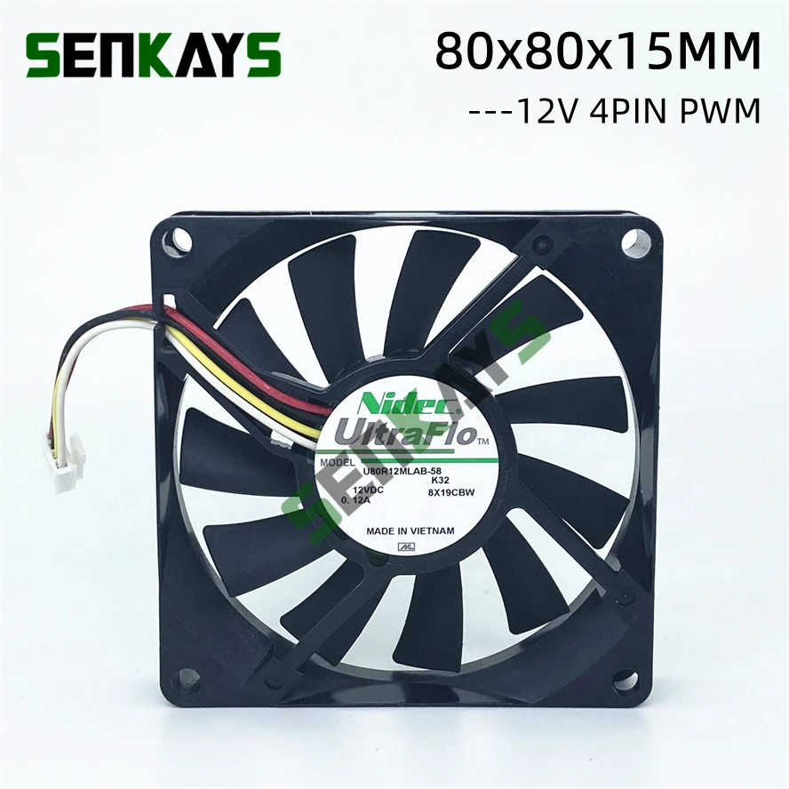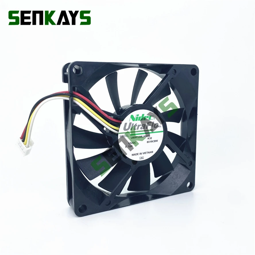 Comprar Nidec-ventilador de refrigeración de 8CM, 80mm, 12V, U80R12MLAB-58, carcasa de ordenador, 4 pines, nuevo