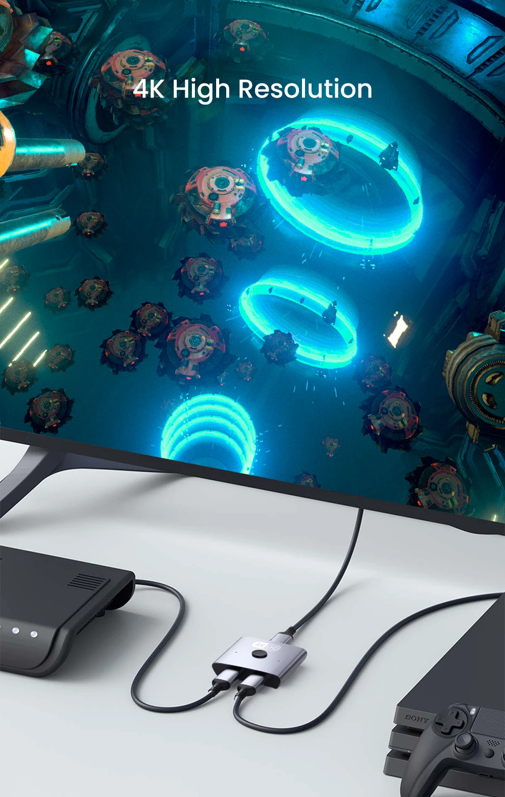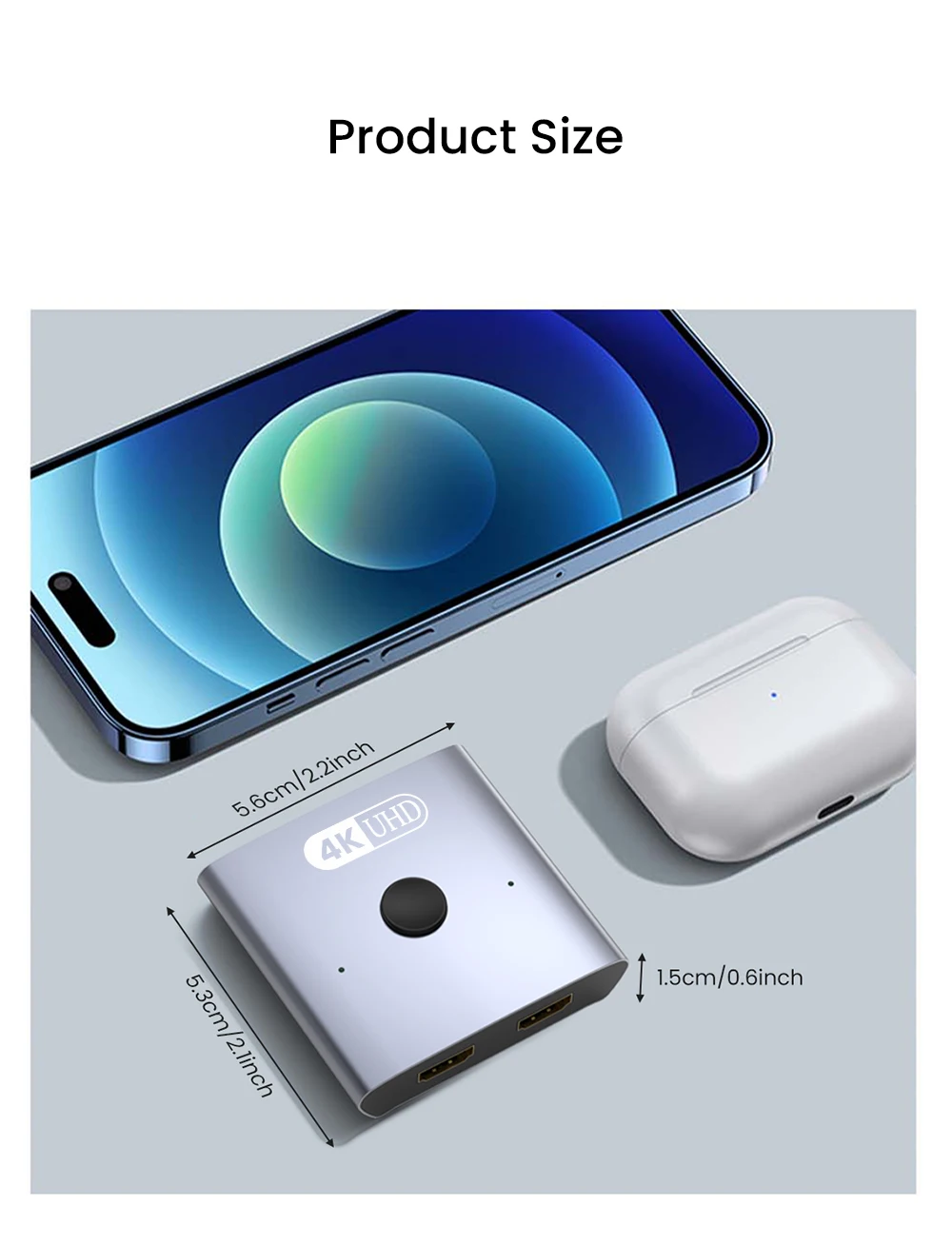 【No se necesita alimentación externa】 Esta caja de conmutador HDMI 4k es fácil de usar, no se requiere alimentación externa, simplemente presione el botón en la caja de conmutador HDMI para cambiar la fuente de entrada o salida.