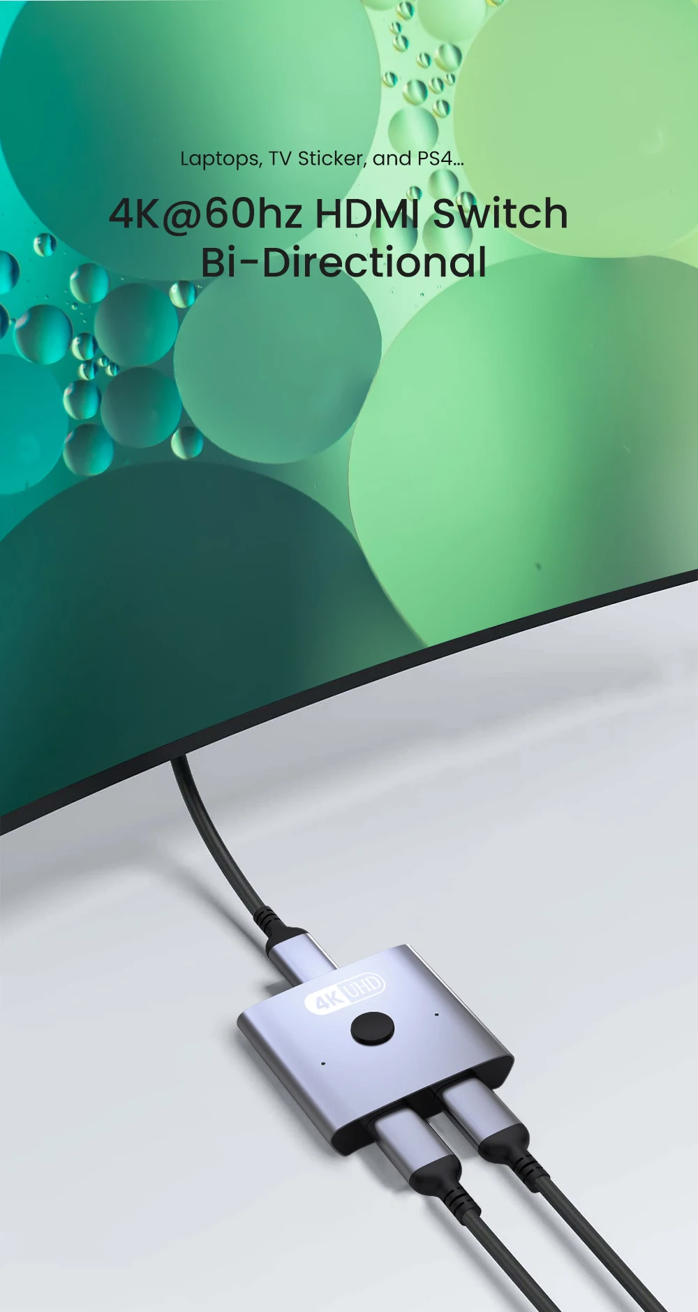 【Transmisión rápida y estable】Este conmutador HDMI AB de aluminio no solo admite un alto ancho de banda 3.La transmisión de datos de 4 Gbps, pero también garantiza una visualización estable y de alta definición de audio y video, reduce la pérdida de transmisión de datos y mejora la eficiencia de la transmisión de la señal.