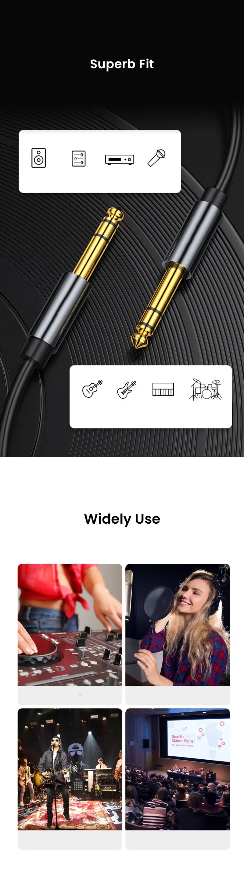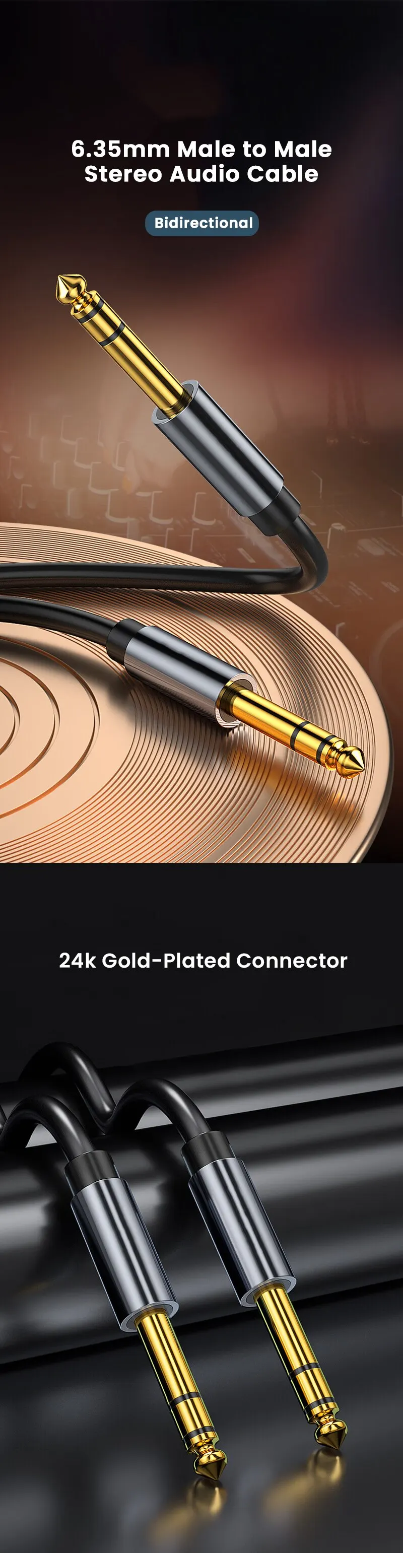 Ajuste cómodo: conectores de servicio pesado chapados en oro de 24K encajan con todos sus dispositivos de 6,35mm que se conectan y eliminan fácilmente.