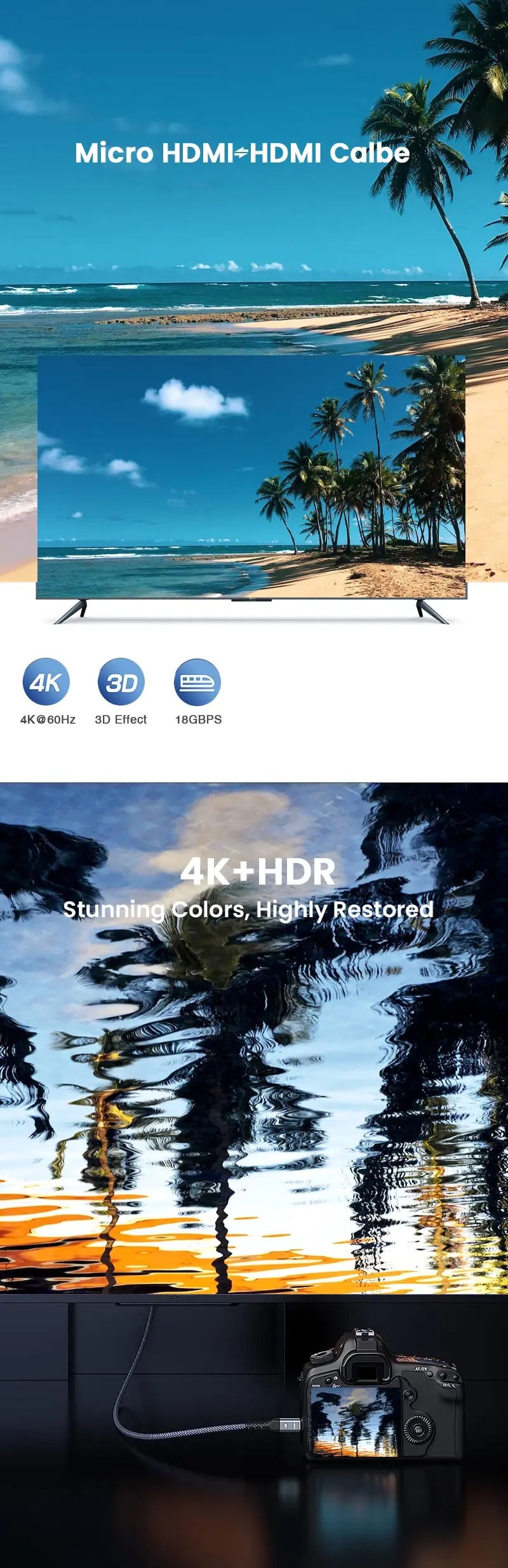 • Cable adaptador Micro HDMI a HDMI :El cable adaptador NIERBO de Micro HDMI a HDMI permite una conexión estable y de alta calidad entre su cámara y monitor.